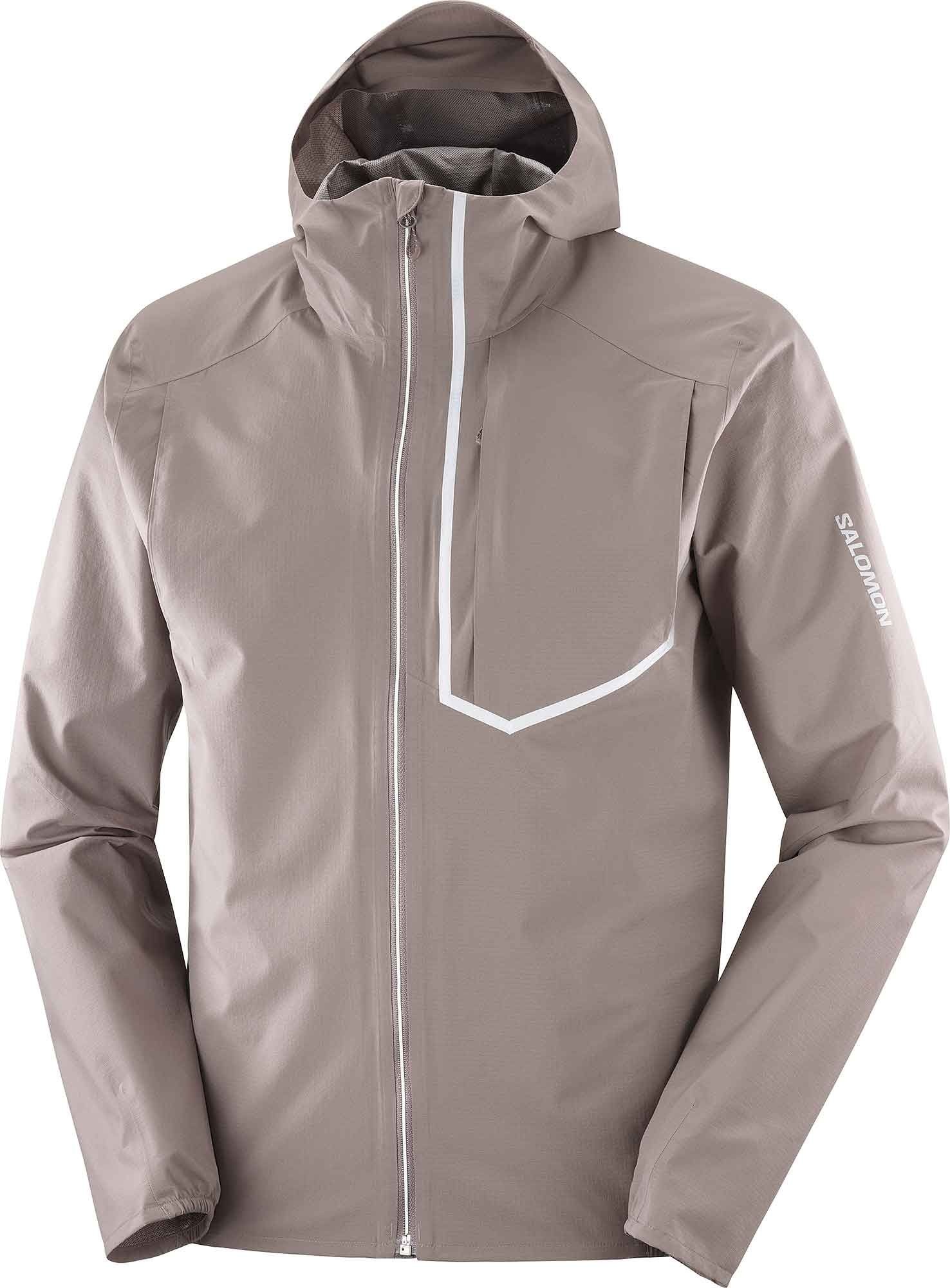 Veste technique Salomon Bonatti Trail Jacket Iron femme en Pertex® Shield, imperméable, ultra-légère et respirante, avec coupe ergonomique sur sac 12 L pour trail running exigeant.
