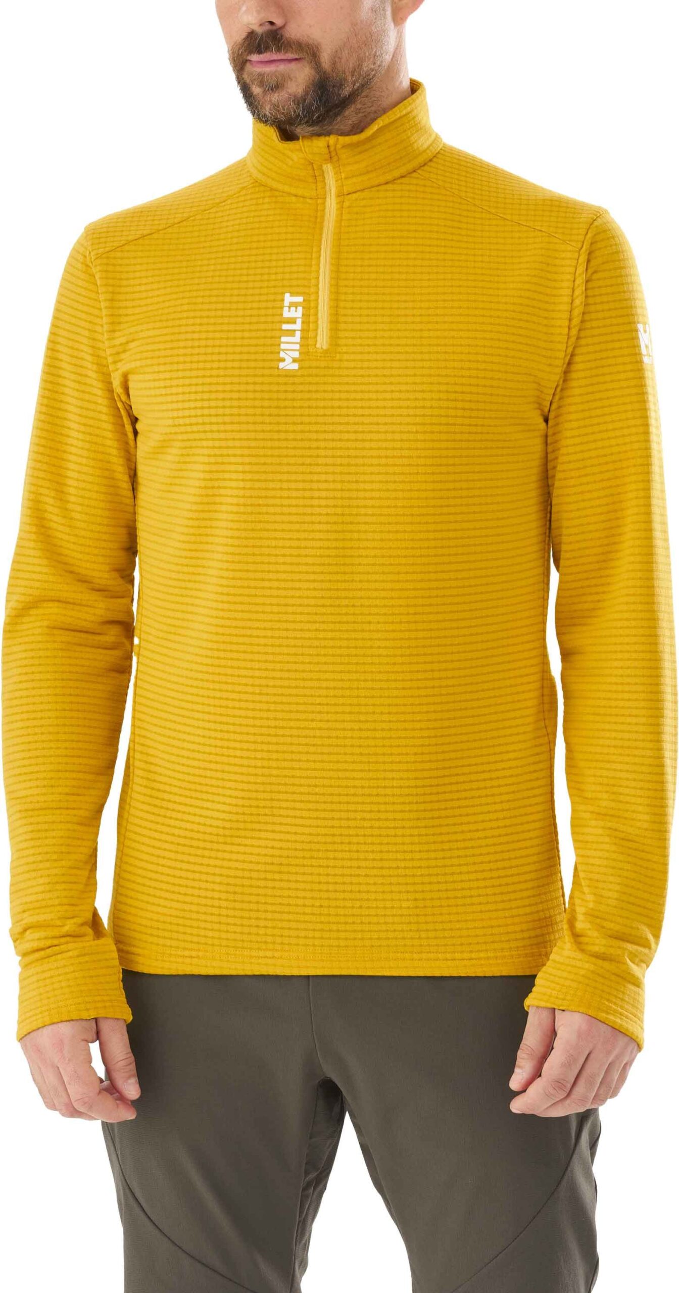 La polaire Millet Intense Fleece PO Black homme, en polyester quadrillé, évacue l’humidité et conserve la chaleur lors du trail en montagne.
