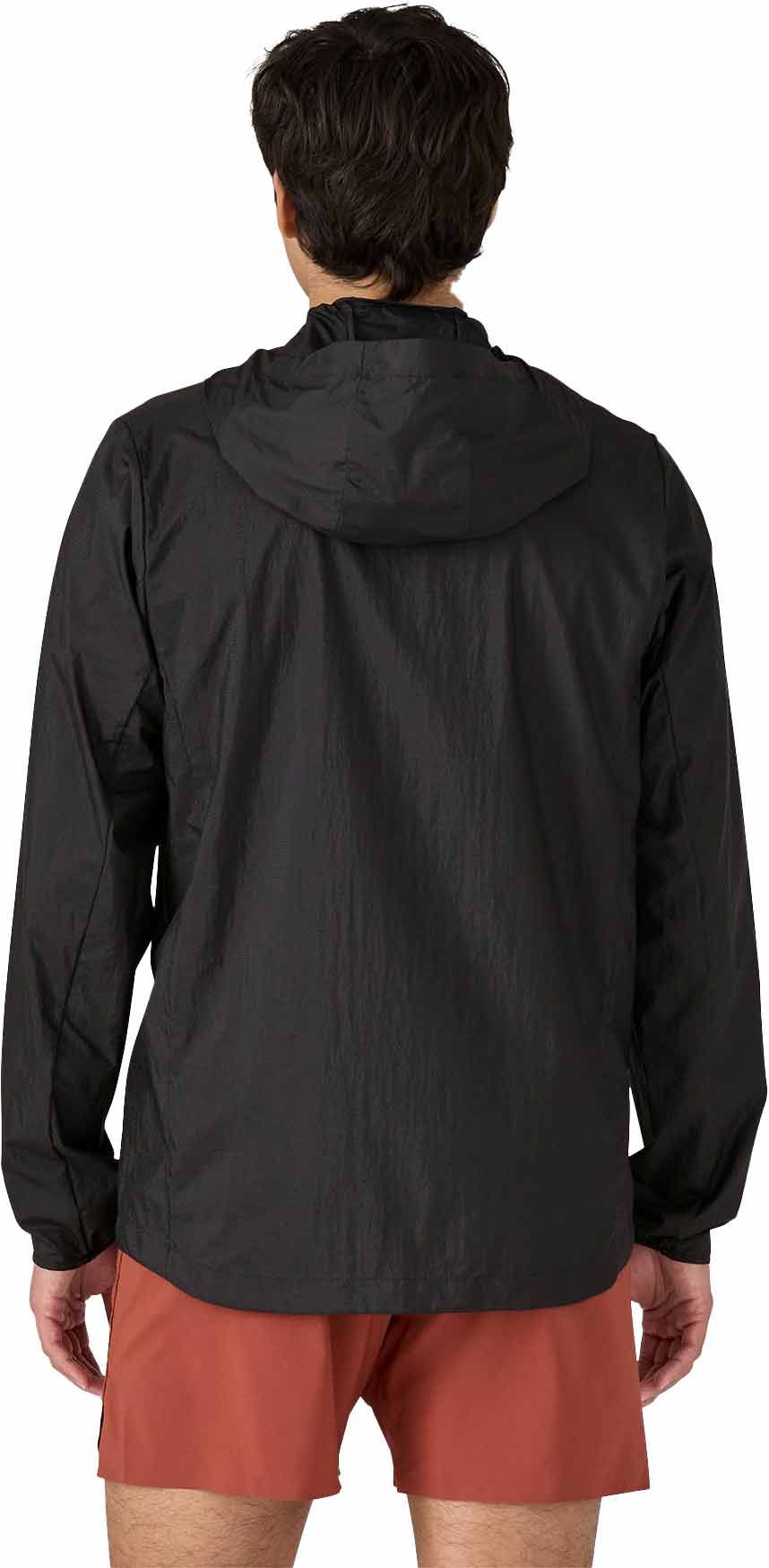 Veste Houdini Jkt Black Patagonia homme, ultralégère en nylon recyclé indéchirable, déperlante sans PFC, se plie dans sa poche poitrine; capuche réglable, poignets et taille ajustables pour une protection thermique efficace.
