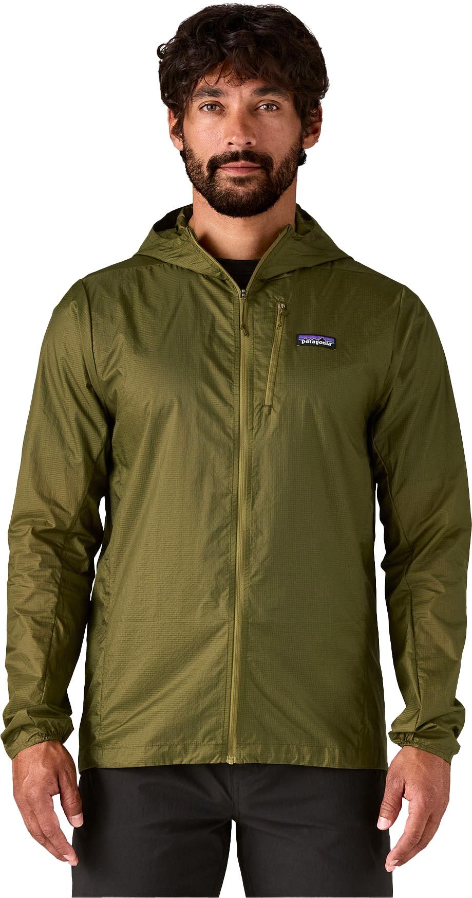 Veste Patagonia Houdini Jkt Pond Green ultralégère pour homme en nylon recyclé indéchirable, déperlante sans PFC, se range dans sa poche poitrine et se porte en première ou couche intermédiaire.