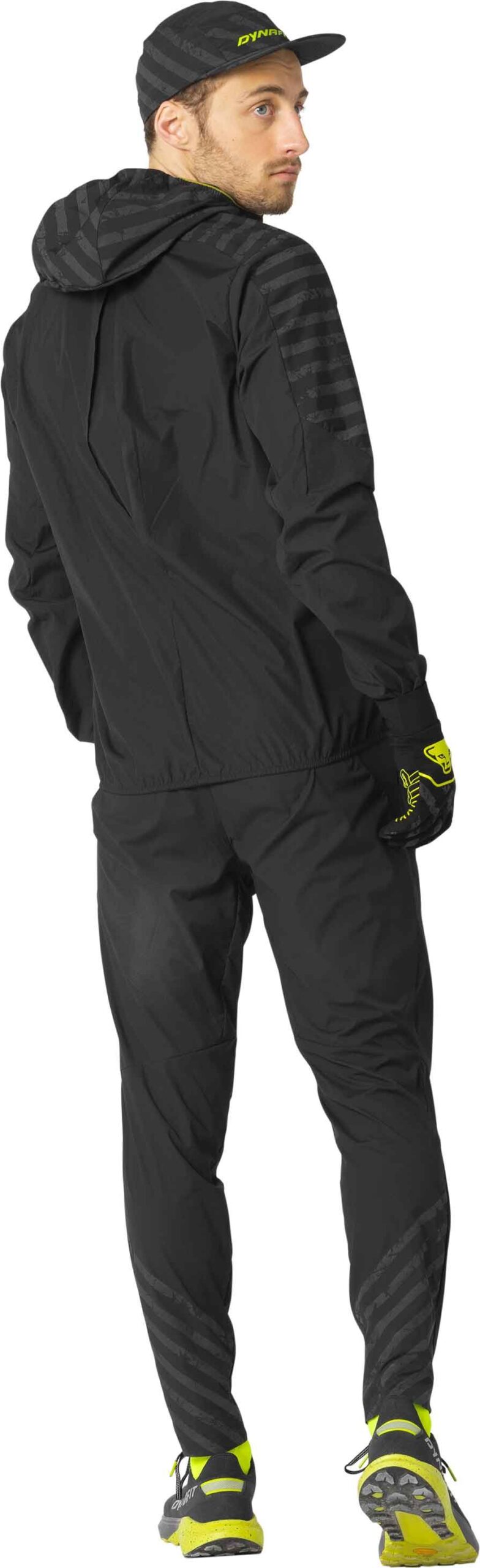 La veste coupe-vent Dynafit Trail Reflective Wind Jkt Black Out pour homme protège du vent, reste visible la nuit et se range dans sa poche pour un encombrement minimal.