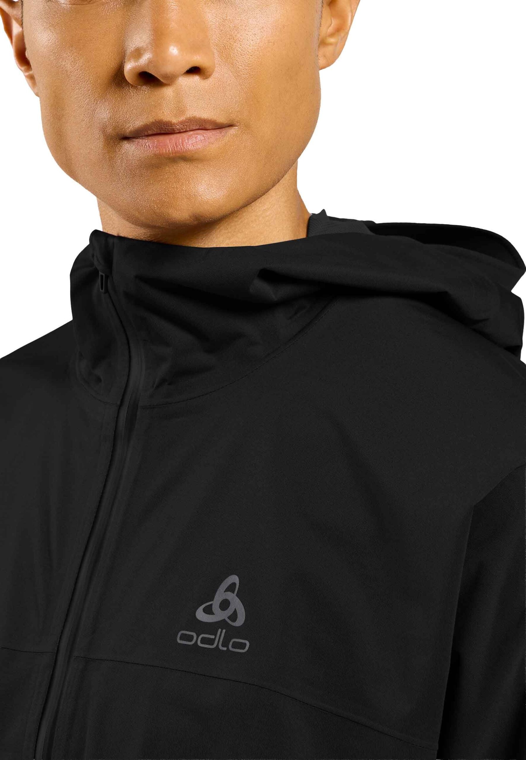 Veste running Odlo Zeroweight Waterproof Jacket homme : coupe ajustée 2,5 couches recyclée, imper-respirante, capuche réglable, se range dans sa poche, 190 g.
