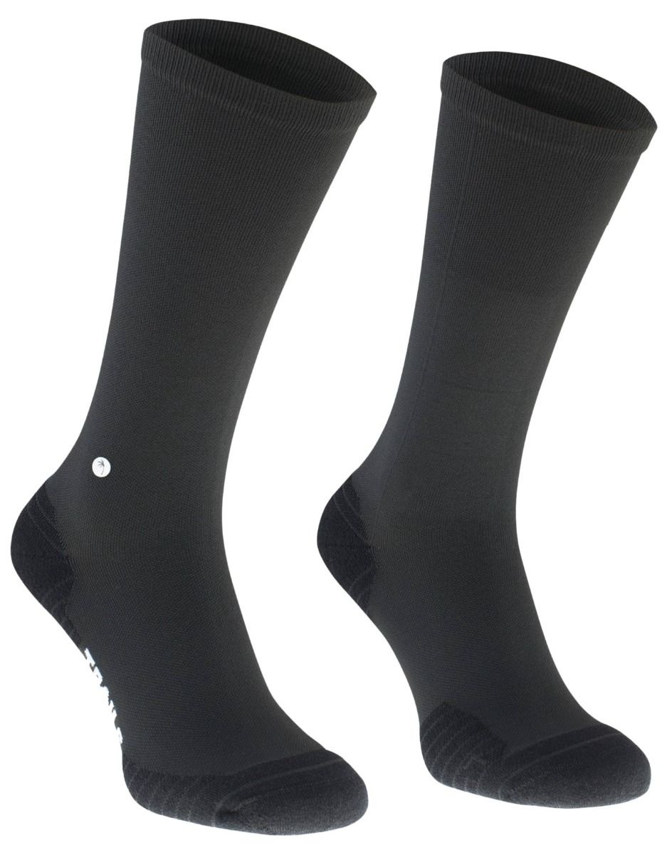 Les Bike Socks Long Black d’ION, chaussettes unisexes, assurent maintien et bien-être durant chaque sortie vélo. Leur maille compressive stimule la circulation et limite la fatigue, prolongant vos sorties en toute légèreté. Des zones ciblées sur orteils et talon apportent un coup de boost en matière d’amorti, isolant vos pieds des chocs et frottements. Le mélange polyester, polyamide, coton et élasthanne conjugue robustesse, aération et douceur : le polyester séchage vite et résiste, le polyamide rigidifie l’ensemble, le coton offre un contact soyeux et l’élasthanne épouse la forme du pied sans le comprimer. Vététistes aguerris ou amateurs de balades outdoor, adoptez-les pour des pieds secs et détendus du début à la fin de l’évasion. Découvrir les catégories associées Chaussettes VTT Vêtements outdoor homme Vêtements VTT