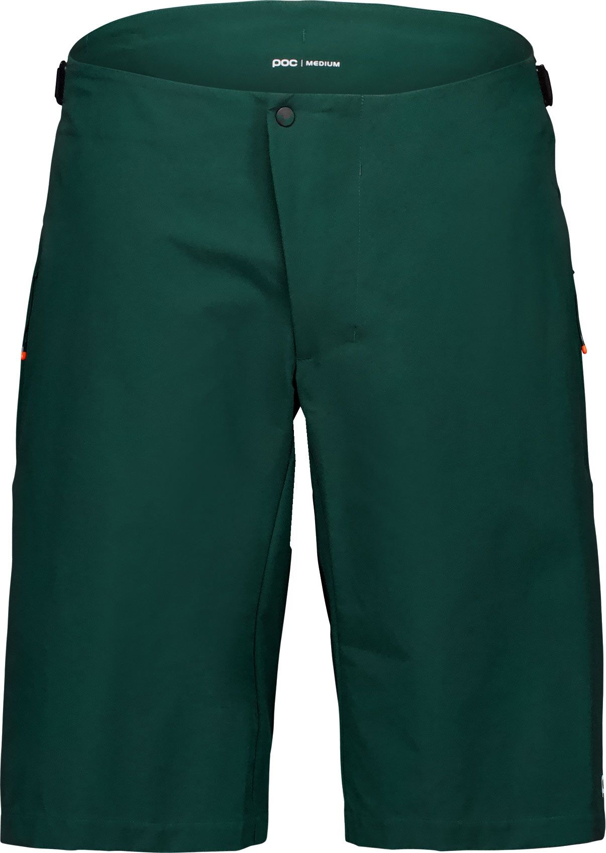 Short POC Motion Air Pargasite Green pour homme, spécialement conçu pour l’enduro : polyamide léger, déperlant et respirant, séchage rapide, zones aérées à l’entrejambe, ceinture réglable et coupe compatible genouillères.
