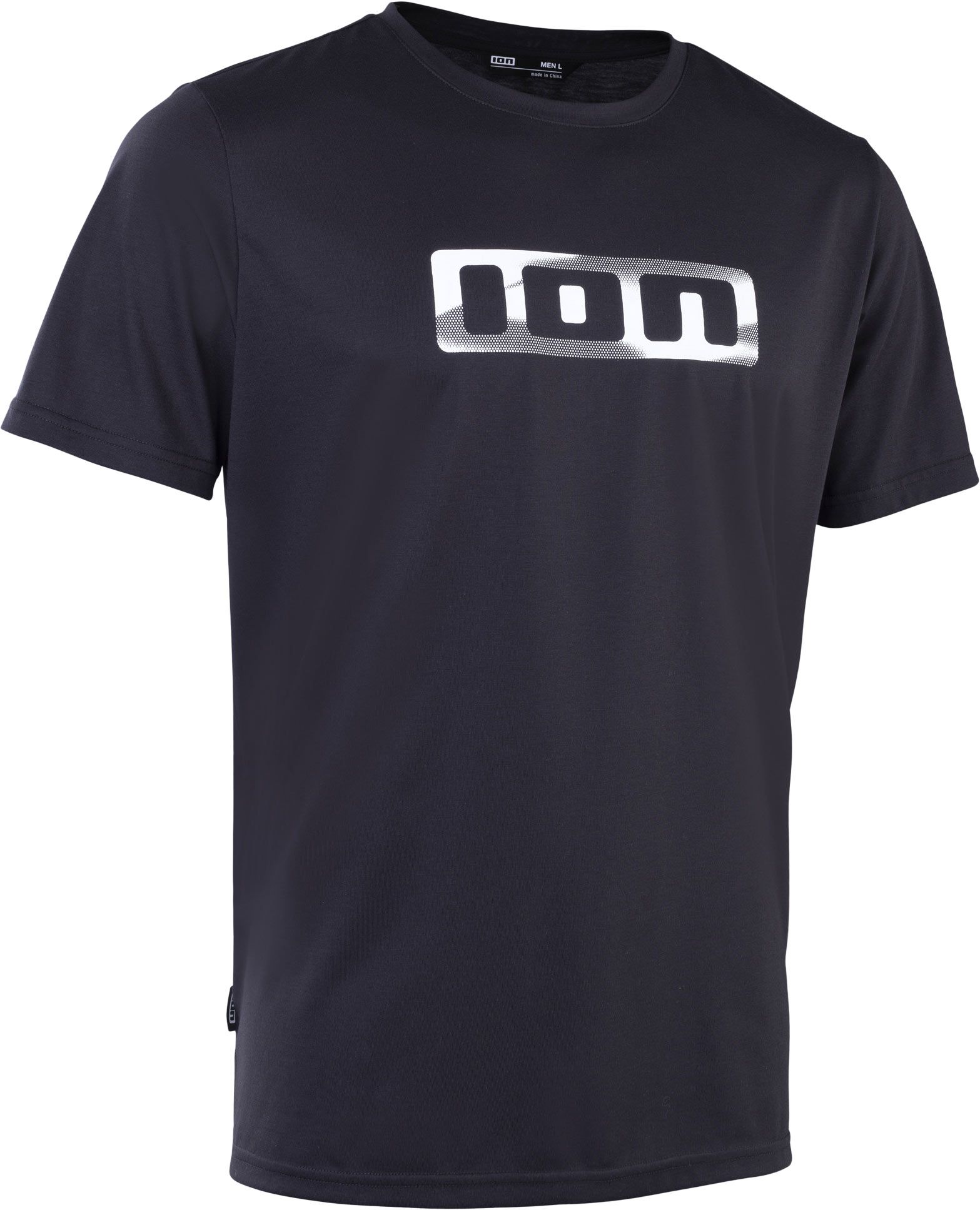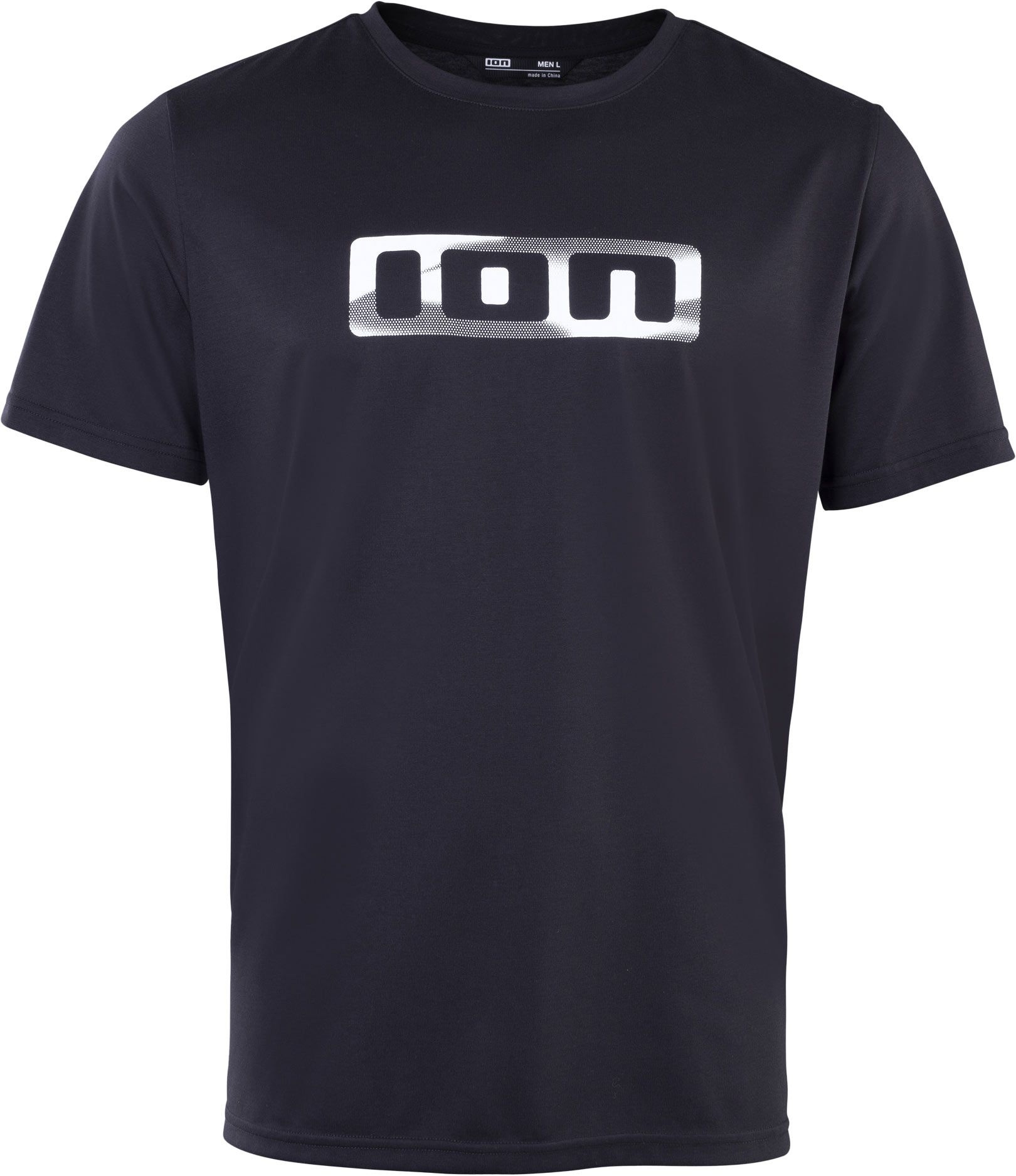Maillot VTT ION Bike Jersey Ionic SS Dr Black, manches courtes en tissu DriRelease® Eco (PET recyclé/coton bio), séchage rapide et respirabilité active pour rester au frais sur les sentiers.