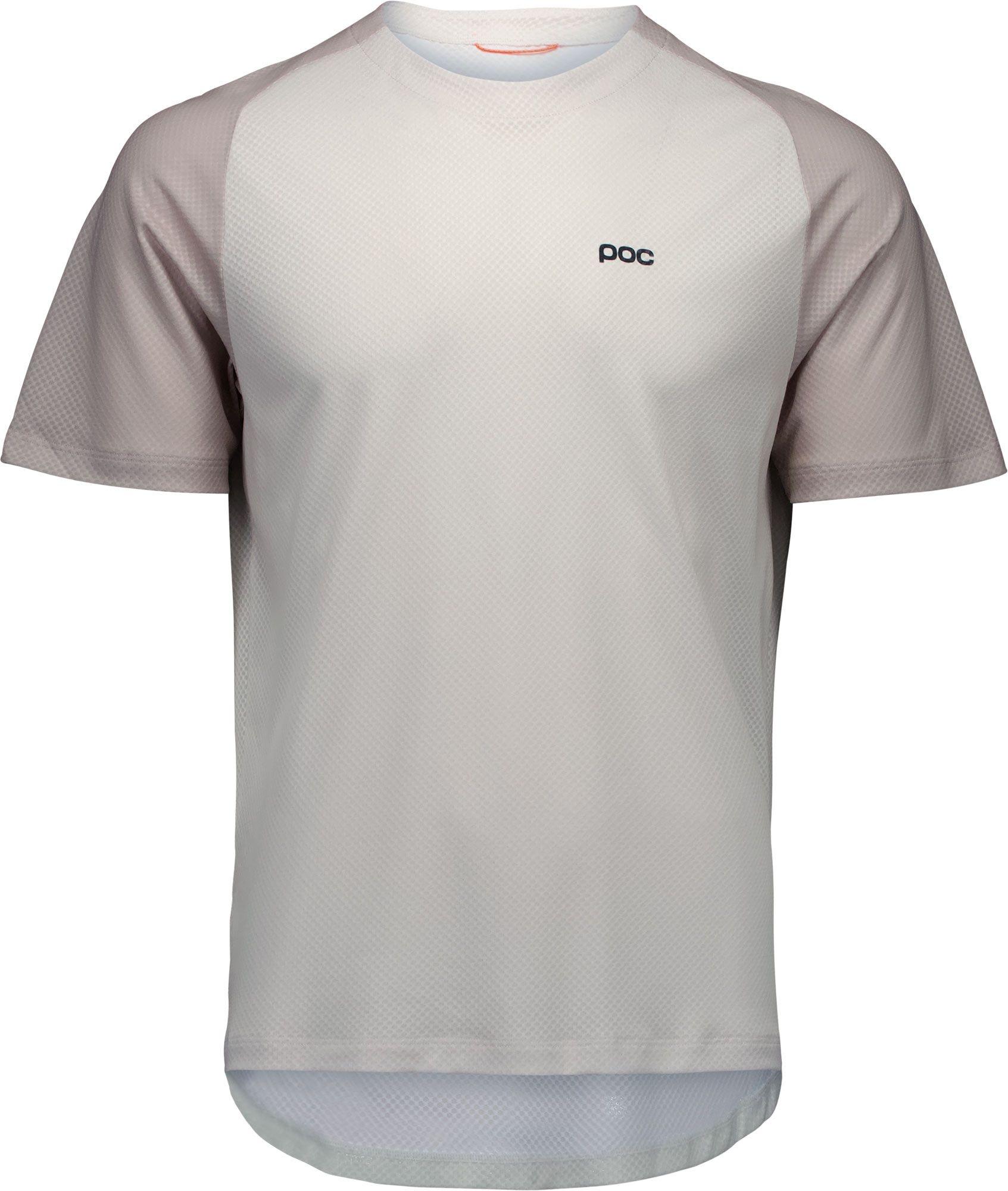 Tee-shirt trail POC Motion Air SS Jersey Okenite Off-White pour homme, en polyester recyclé respirant, séchage rapide et coupe ajustée compatible protection.