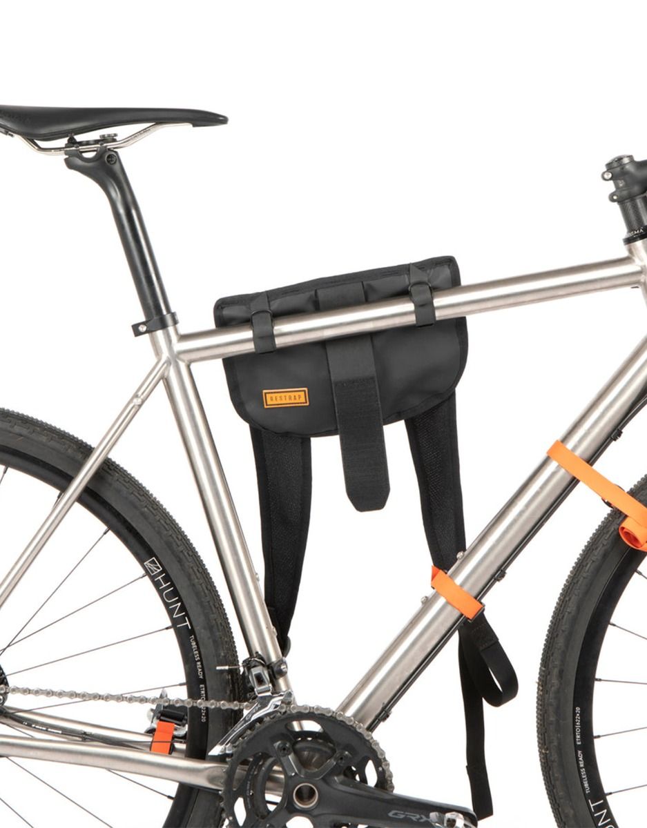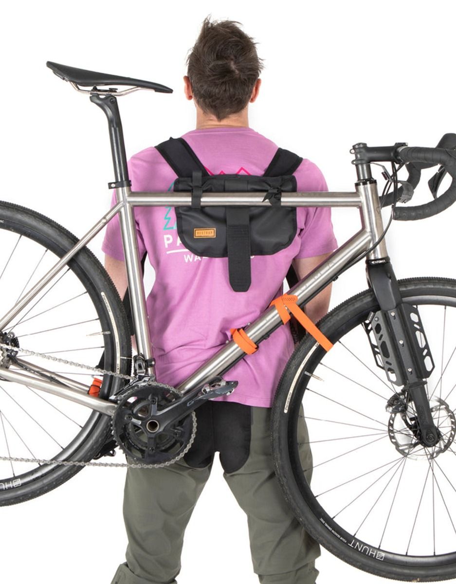 Le harnais Hike A Bike de Restrap permet de porter facilement votre vélo en randonnée gravel ou bikepacking grâce à son nylon TPU robuste et ses sangles réglables.