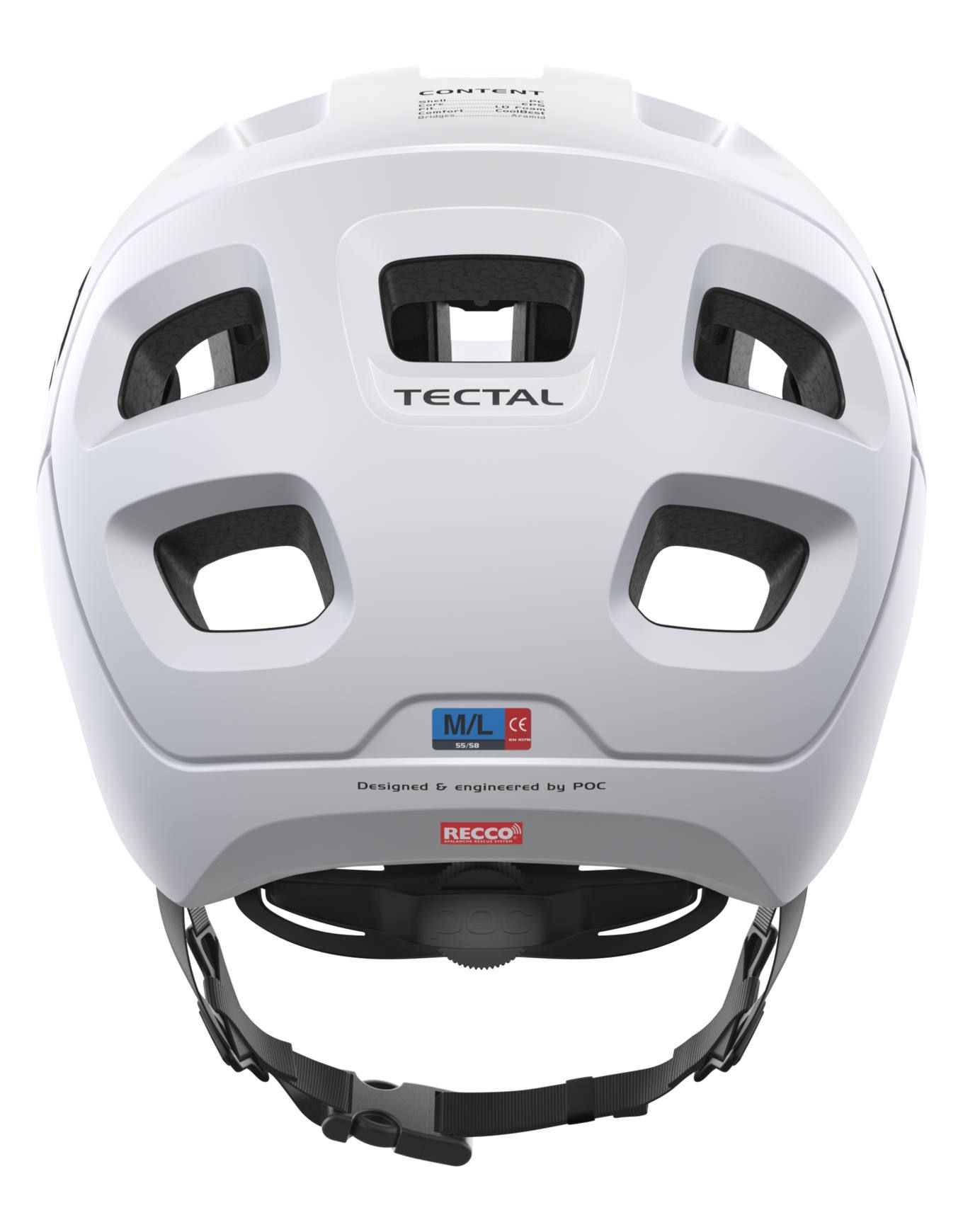Casque VTT POC Tectal Hydrogen White Matt : construction In-Mold polycarbonate, doublure EPS renforcée, ventilation optimisée, réflecteur RECCO® et réglage précis pour trail, enduro et VTT.