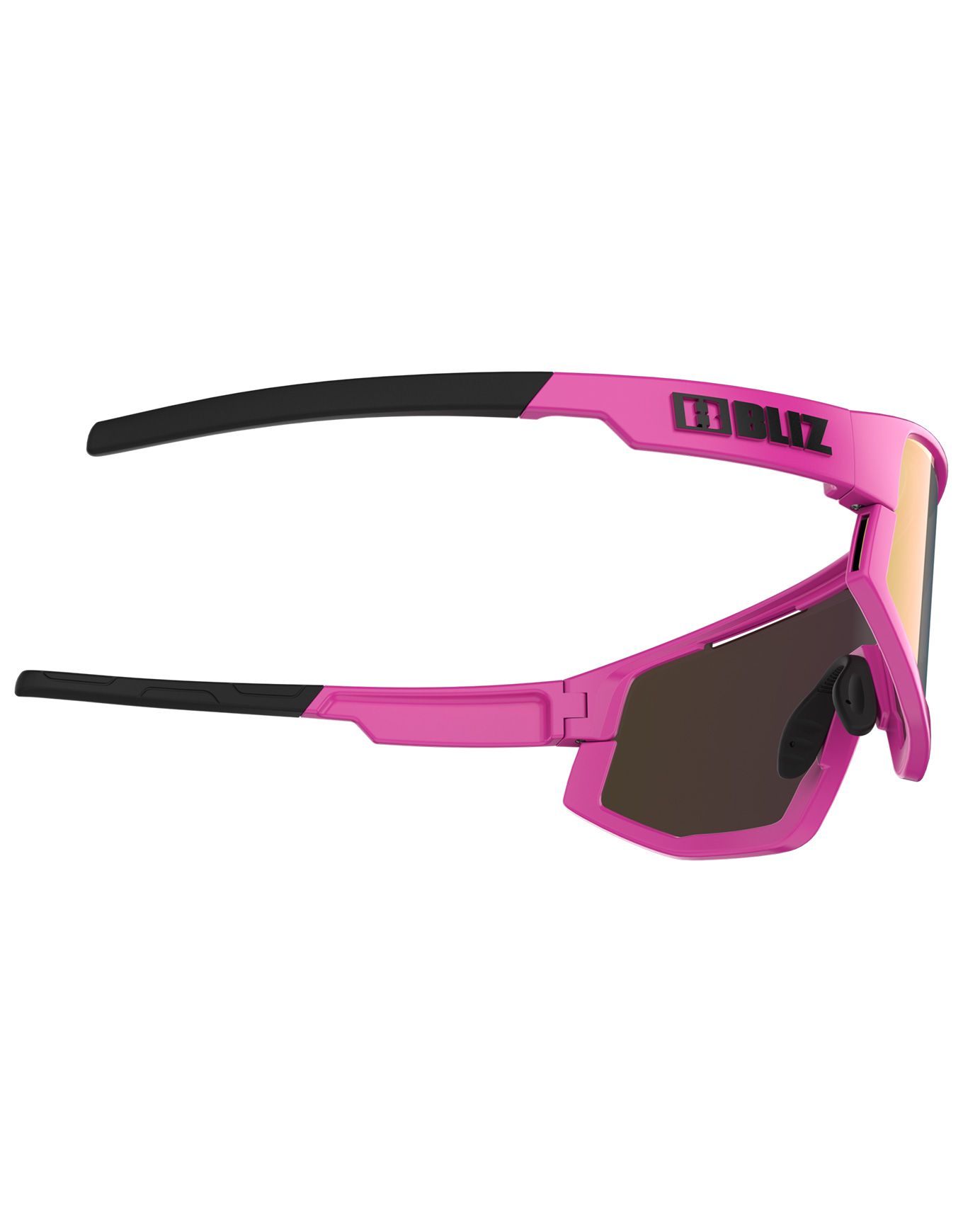Lunettes de soleil unisexe Bliz Vision Matt Neon Pink Matt Brown with Purple Multi, monture légère et fine, verre fumé bleu catégorie 3, traitement anti-reflets, système Hydro Lens et technologie Jawbone interchangeables.