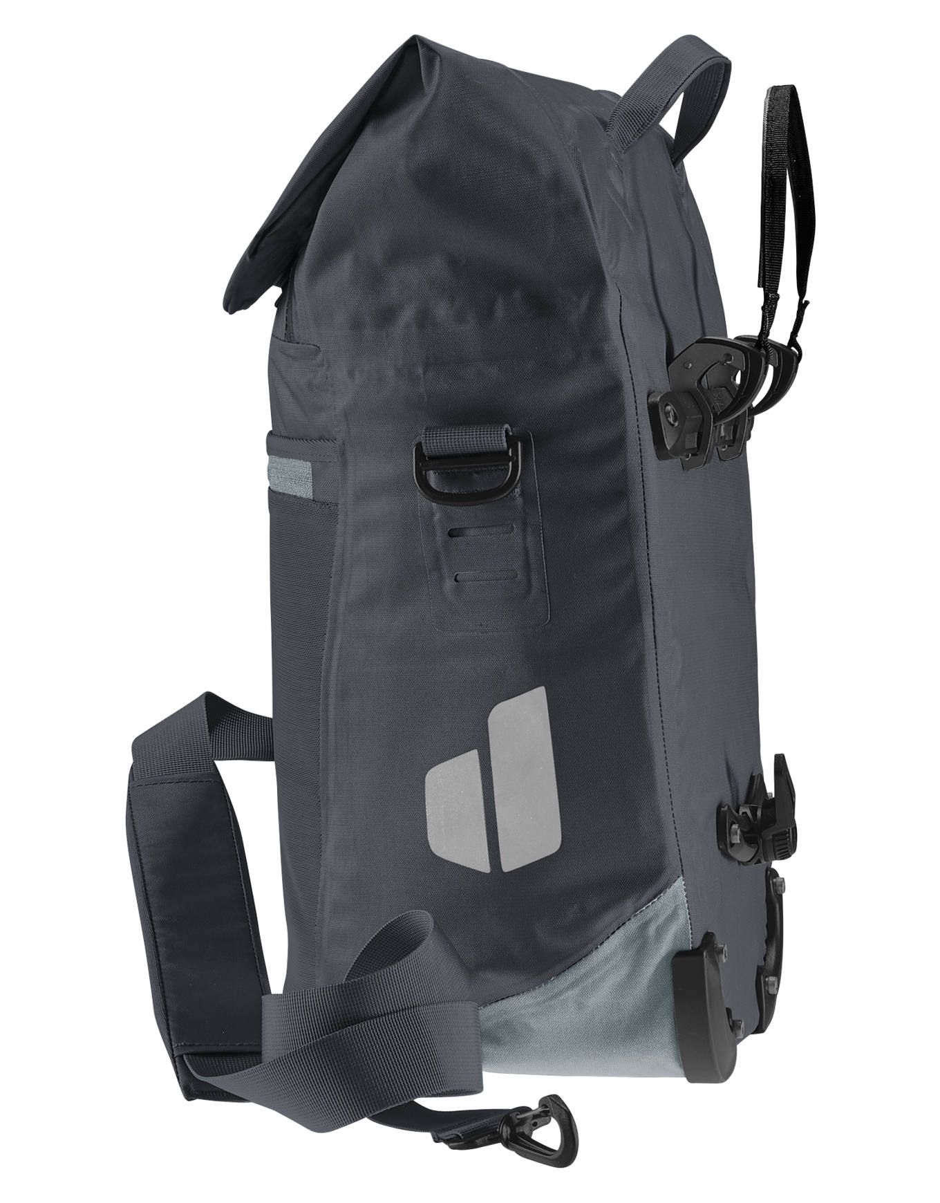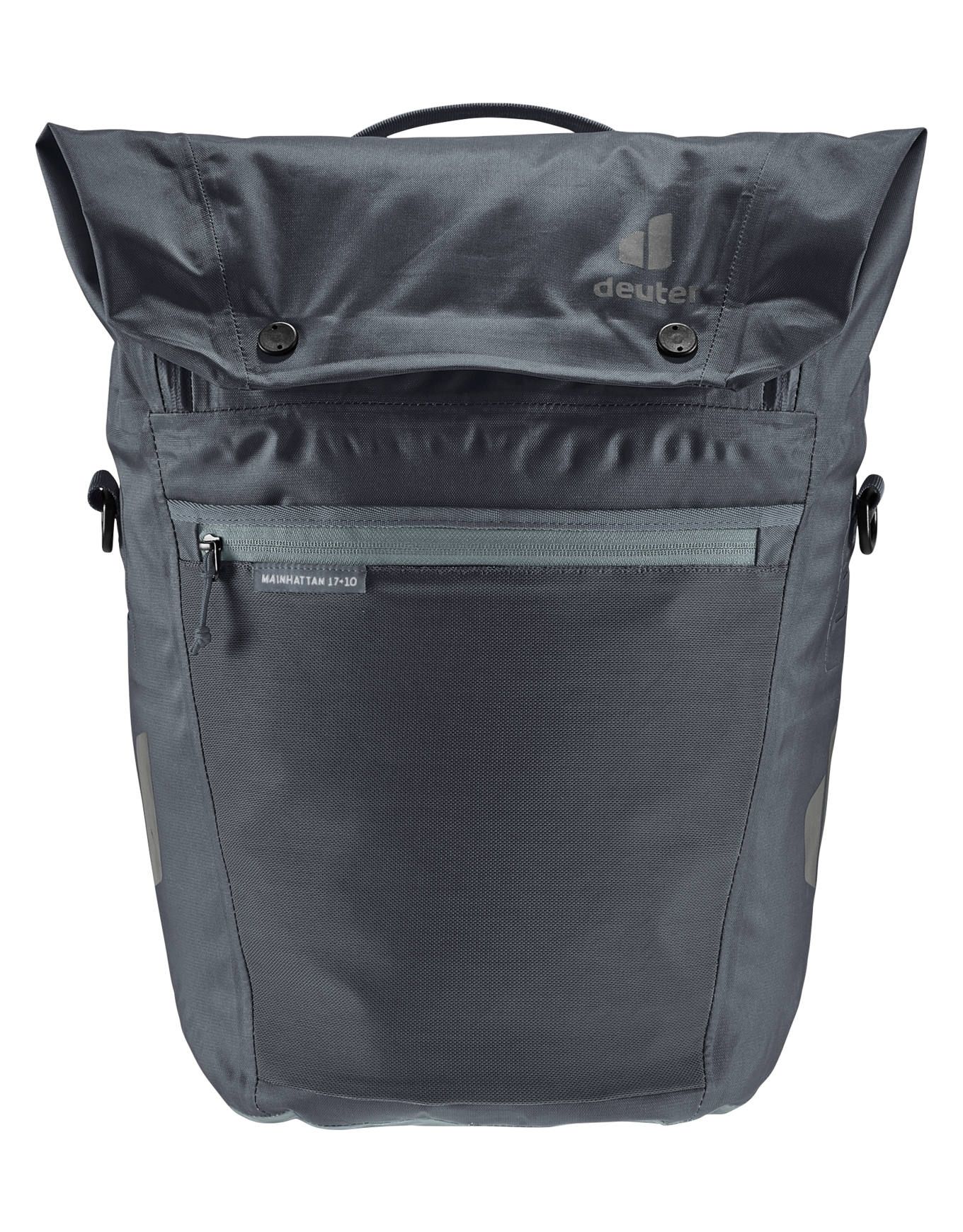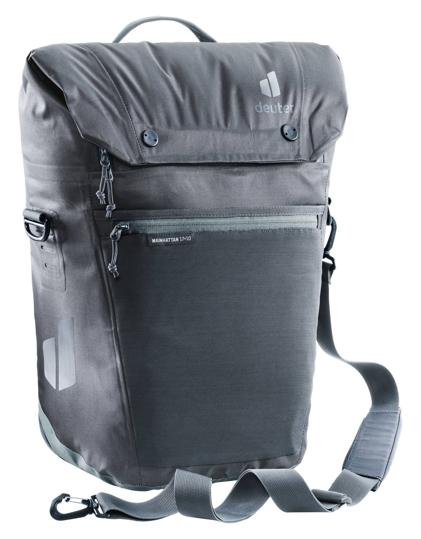 Sacoche urbaine Deuter Mainhattan 17+10 Graphite Shale, 17 L extensible, poche 15 », fixation BagFix, bandoulière, textile étanche.