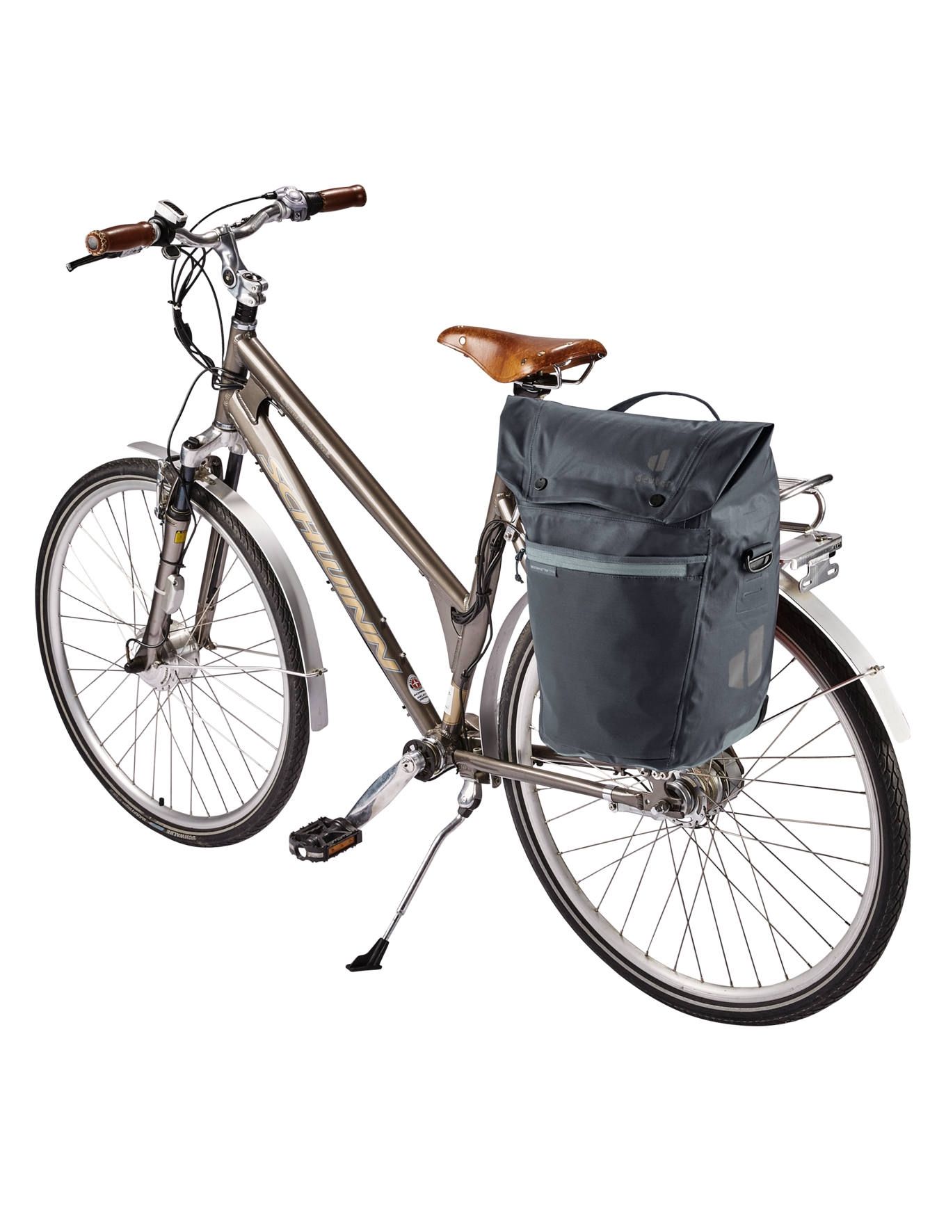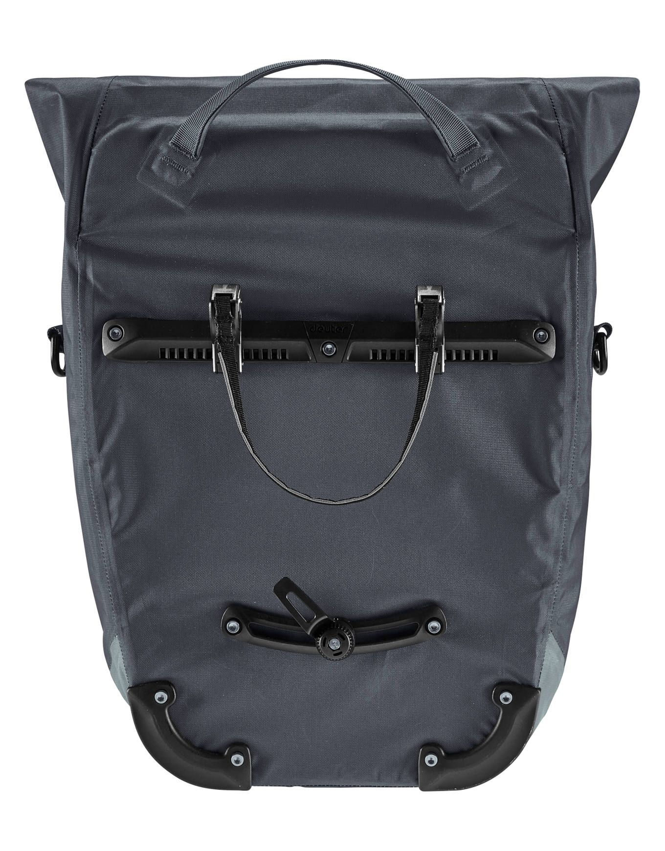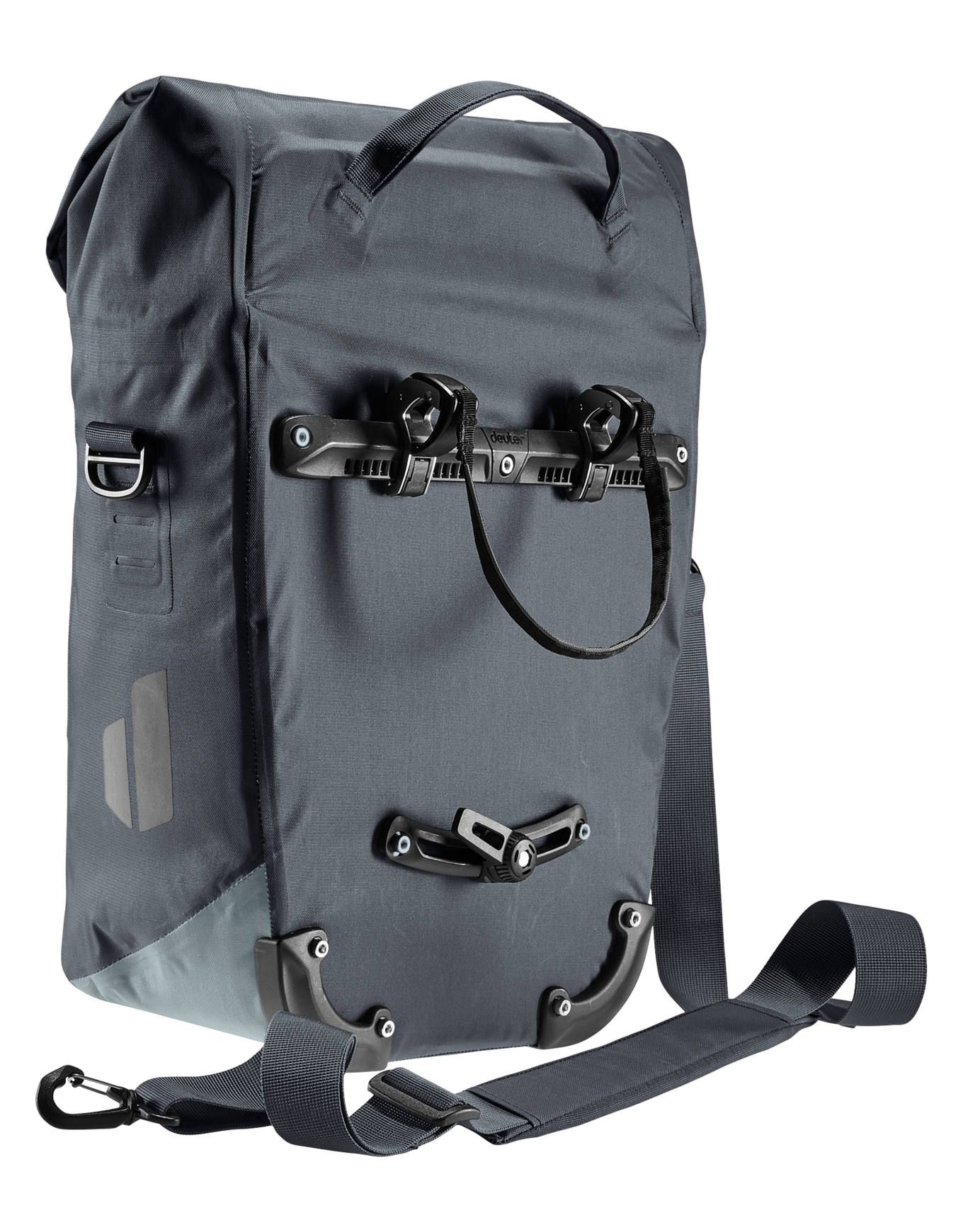 Sacoche urbaine Deuter Mainhattan 17+10 Graphite Shale, 17 L extensible, poche 15 », fixation BagFix, bandoulière, textile étanche.