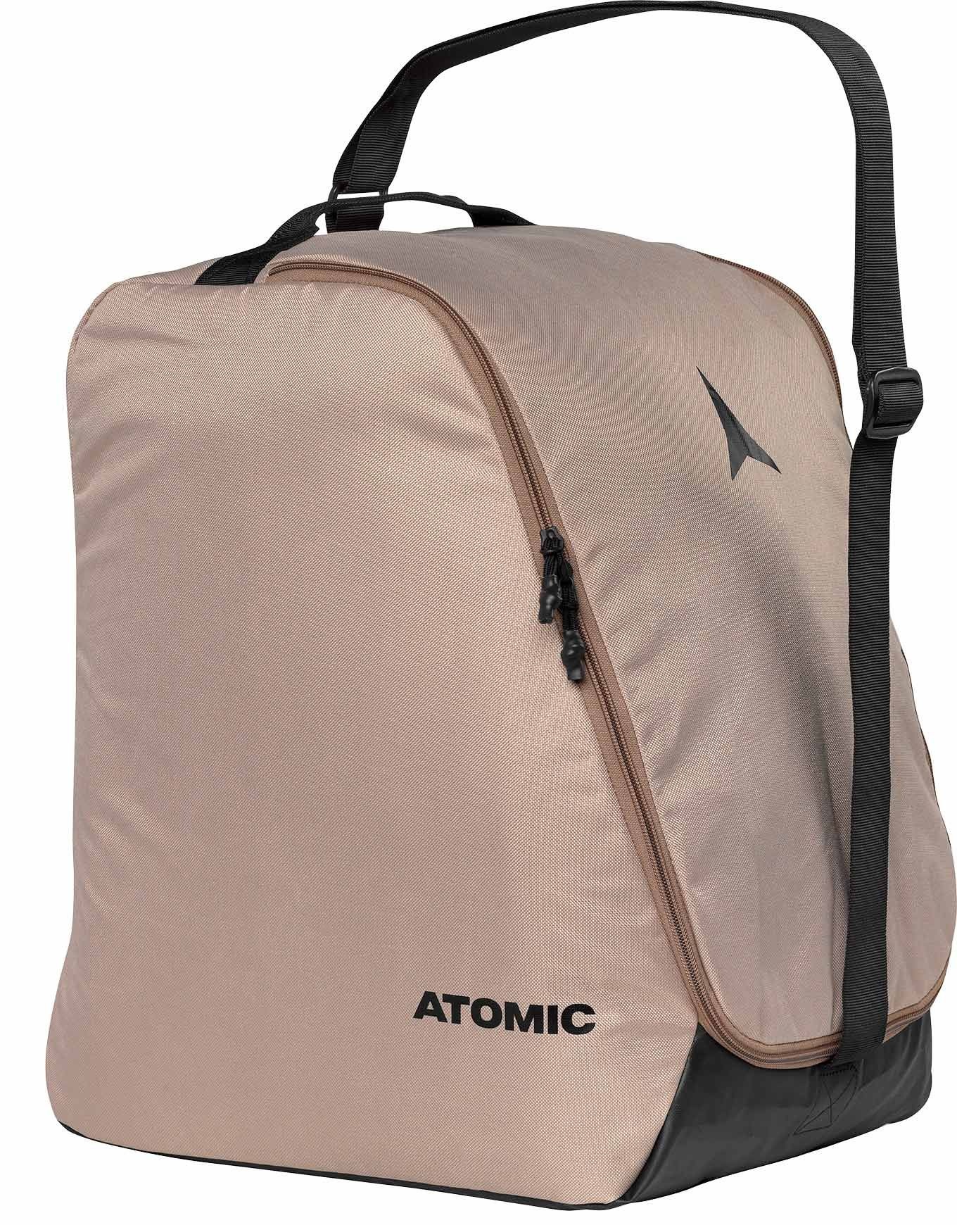 Sac à chaussures de ski Atomic Boot Bag beige : tissu imperméable antitache, grille d’aération, grand ouverture et poignée-bretelle réglable pour un transport organisé jusqu’aux pistes.