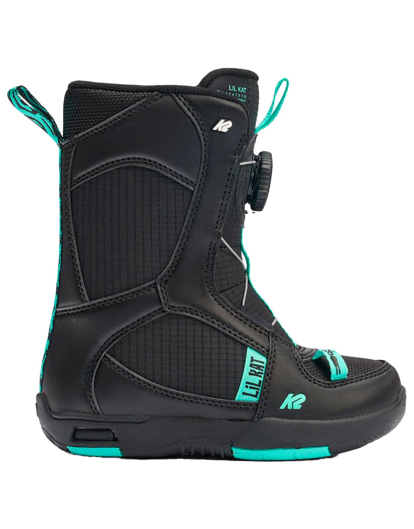 Boots snowboard enfant K2 Snowboard Lil Kat Black, flex doux et serrage Boa® pour un maintien précis ; système de cales ajustables pour accompagner la croissance, idéal aux jeunes freerideurs débutant à avancé.
