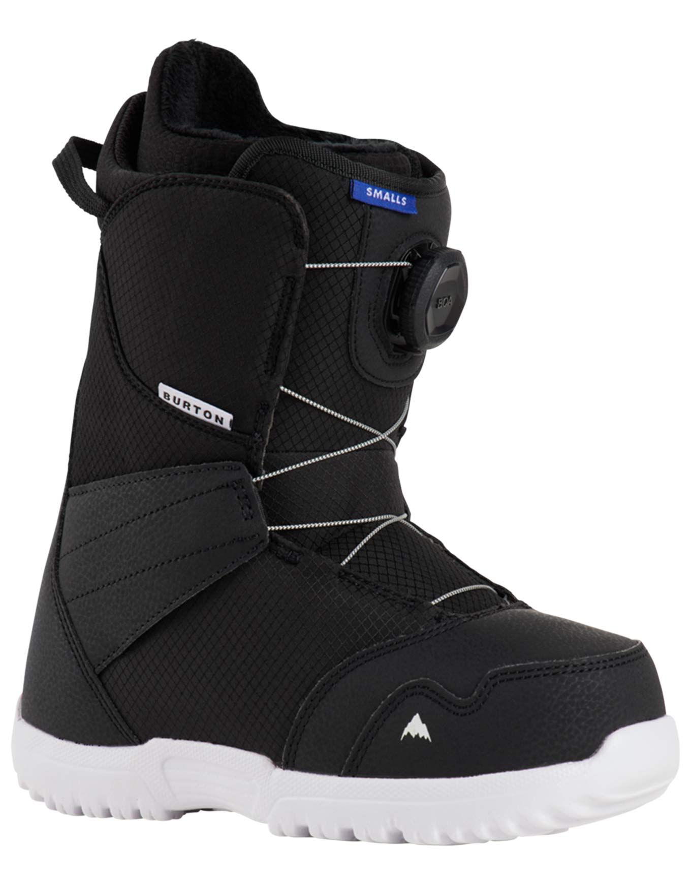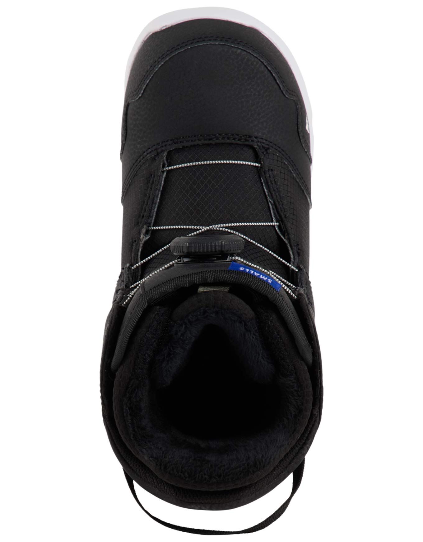 Boots de snowboard Burton Smalls BOA® Black enfant : laçage BOA® Single Zone pour enfiler seul, chausson Imprint™ Junior intégré, semelle légère DynoLITE et chaleur Sleeping Bag.