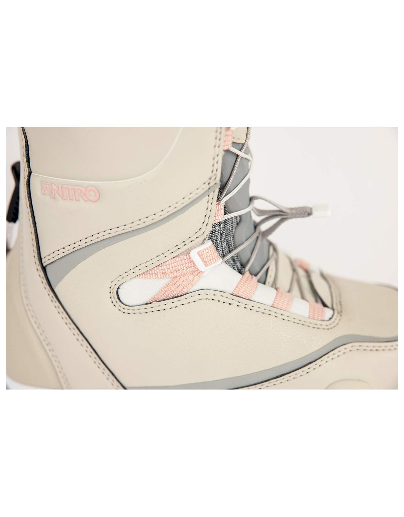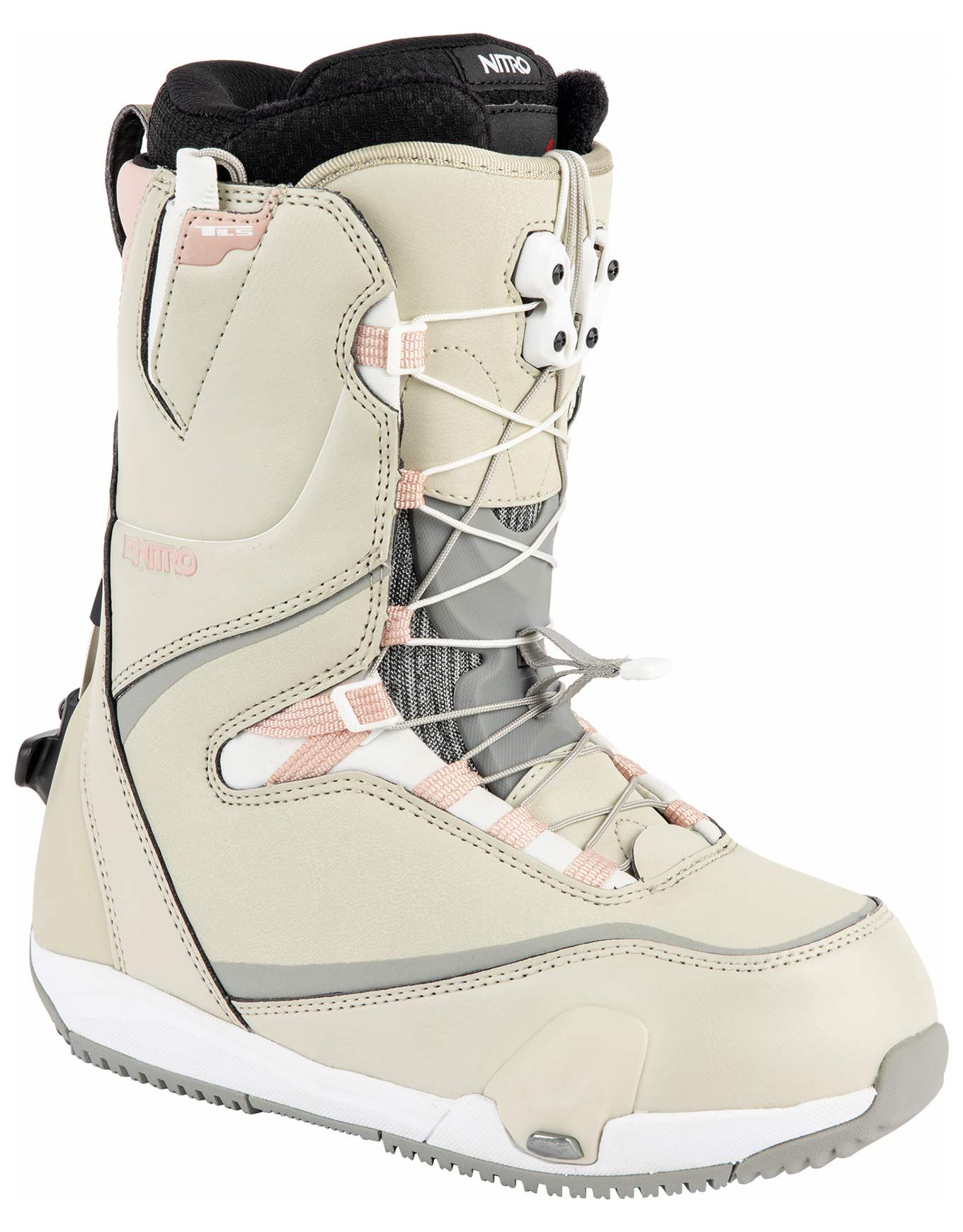 Les boots Nitro Cave TLS Step On pour femme combinent le système Step On® pour un chaussage instantané, un chausson thermoformable Cloud 9, laçage TLS séparé et flex 7/10 pour réactivité et confort des rideuses intermédiaires à avancées.