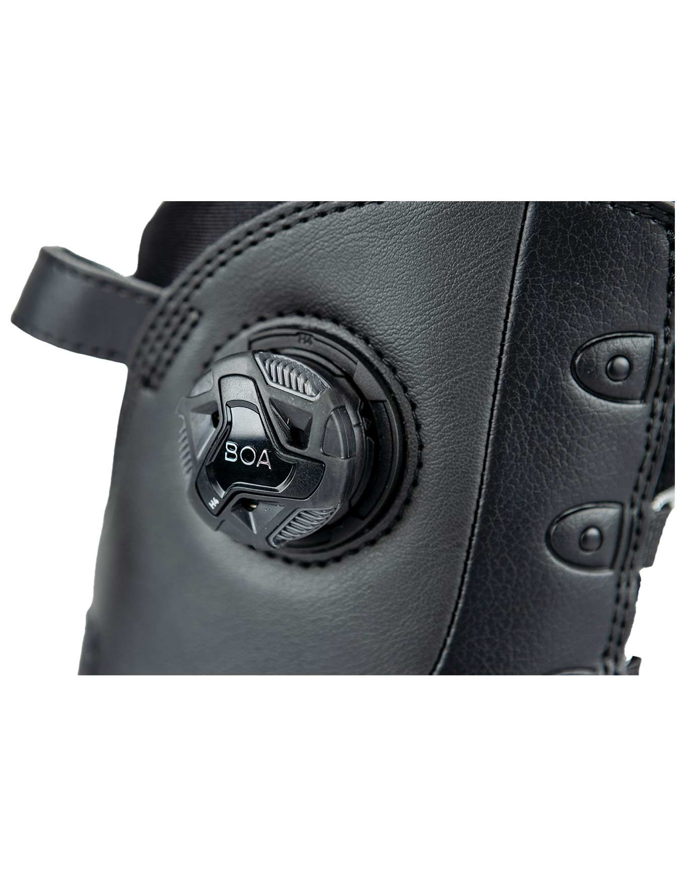 | DUAL ZONE BOA® FIT SYSTEM | Le double système de laçage Boa® assure un ajustement idéal, facile et rapide. La molette latérale permet de régler la partie basse de la boots, tandis que la molette située sur la languette règle le collier. |