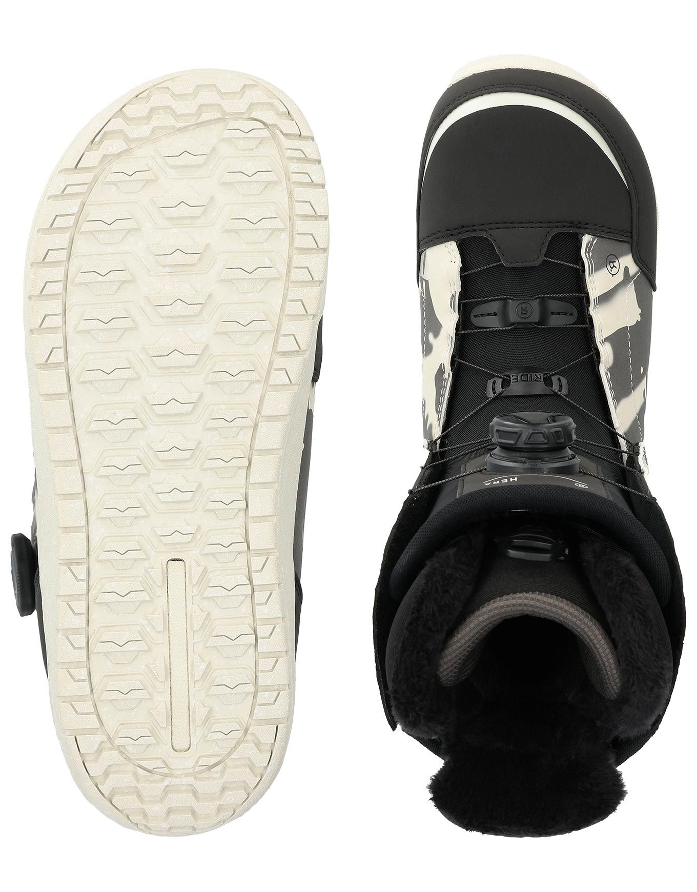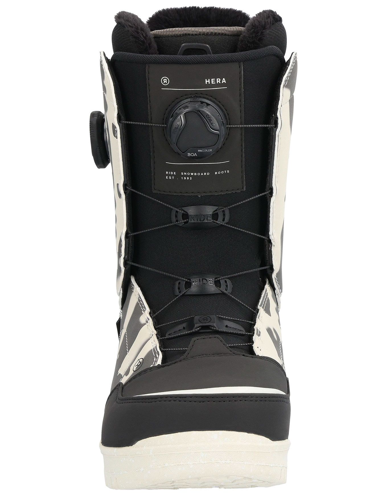 Boot de snowboard all-mountain Ride Hera pour femmes confirmées : serrage BOA H4, chausson Intuition, maintien talon Tongue Tied, semelle Jade Plus et régulation thermique pour confort et précision maximale.
