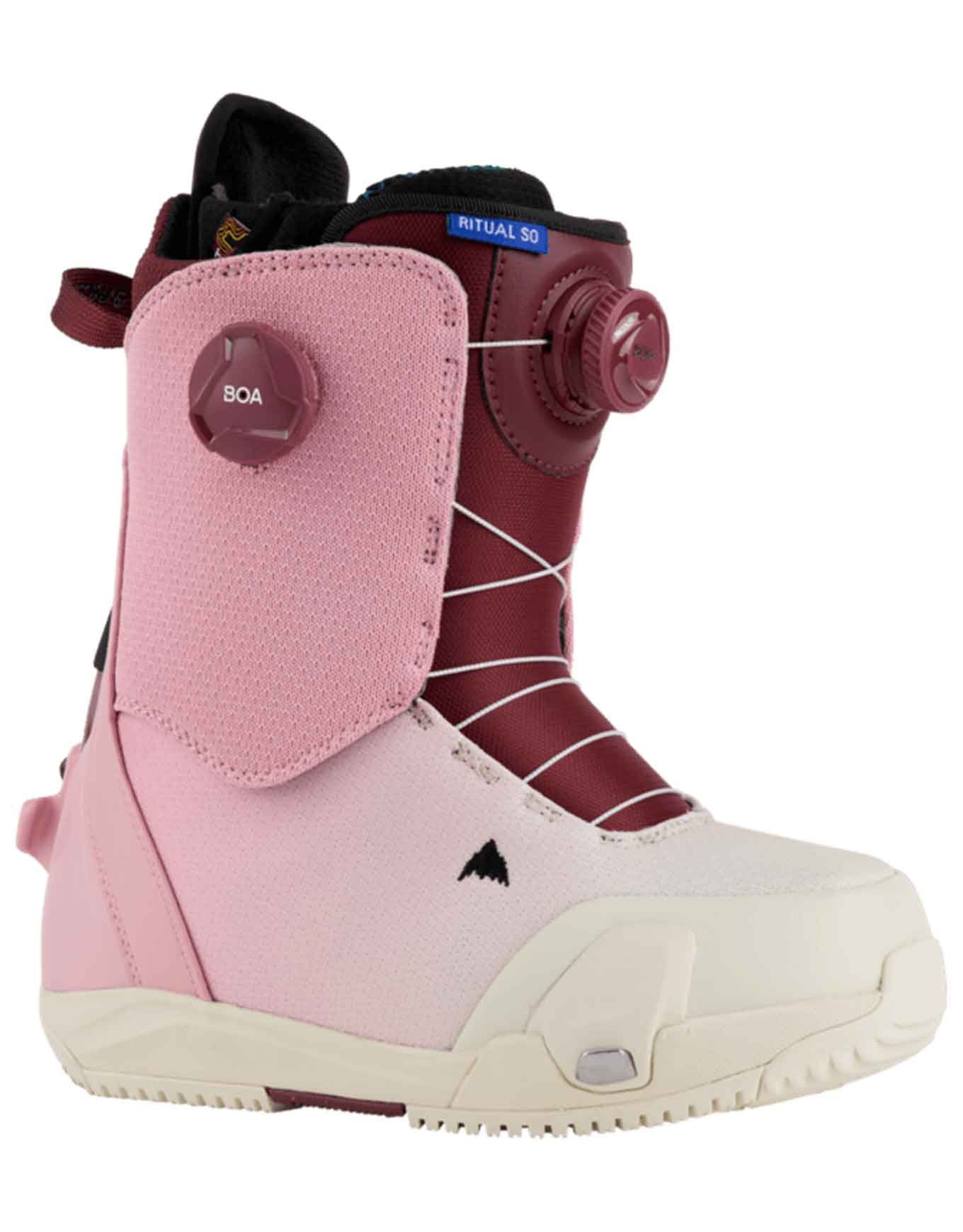 Boot de snowboard femme Burton Ritual Step On, freestyle all-mountain : enfilement debout, transmission ultra-rapide, liberté de mouvement entre park et backcountry.