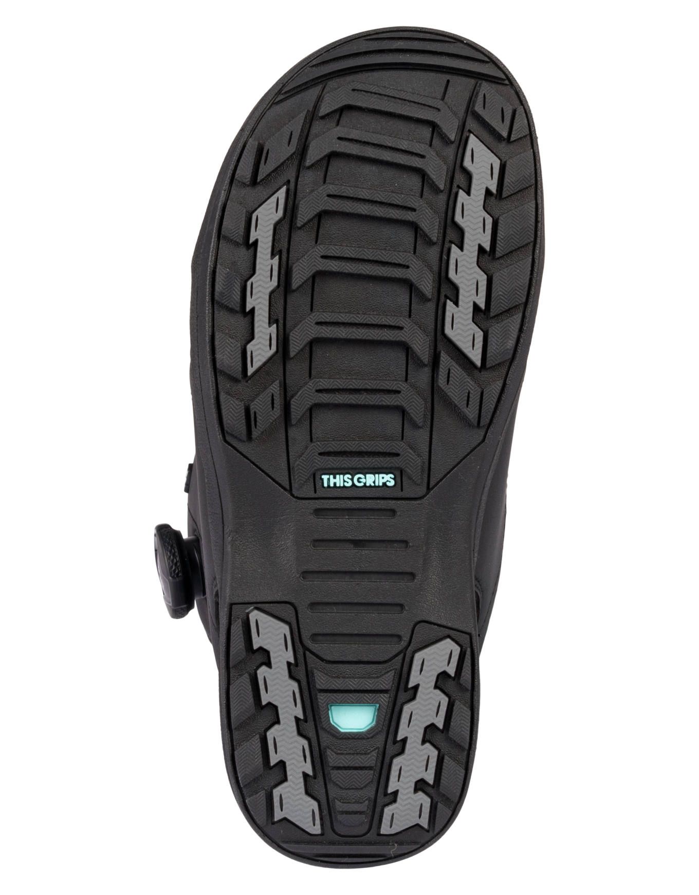 Flex 7/10 : une rigidité équilibrée qui permet d’attaquer toute pente ou module avec le maintien et la précision requis. La semelle externe This Grip ! with Harshmellow™ absorbe les vibrations et assure stabilité, même lors des gros impacts en half-pipe.
