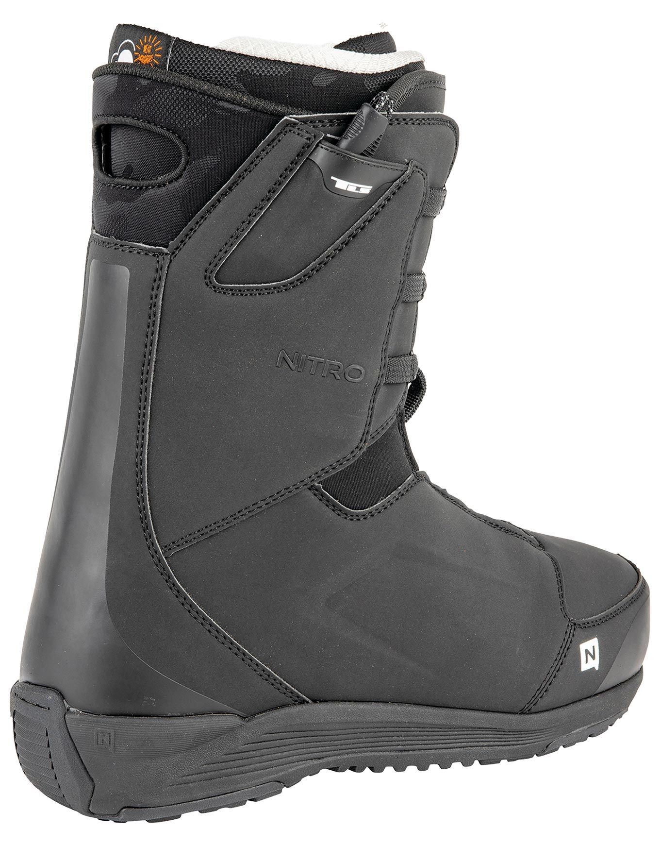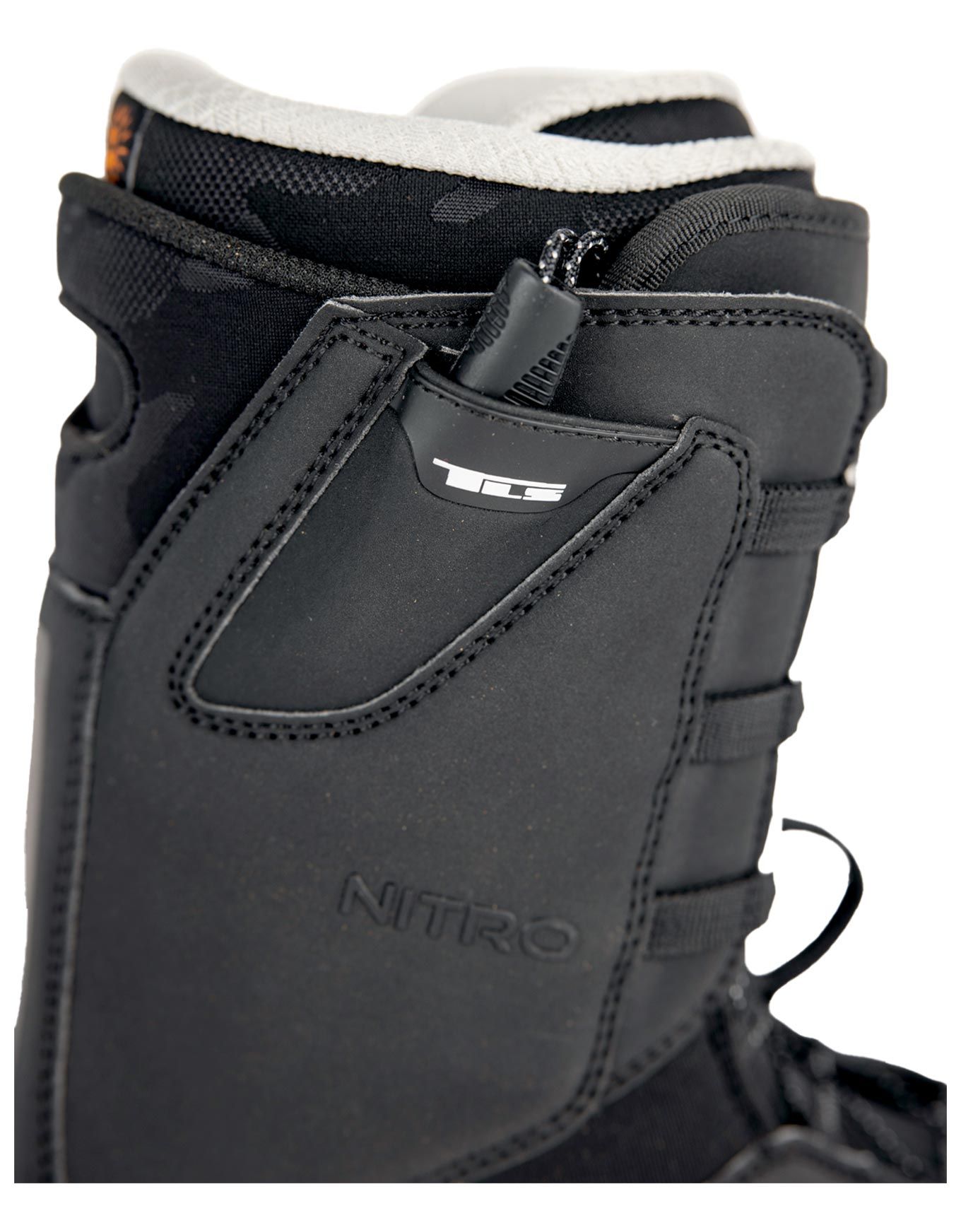 Boots de snowboard all-mountain Nitro Anthem TLS Black pour homme, avec chausson thermoformable Cloud 5, laçage TLS Powercord + ILS pour maintien optimal et système Bail Out pour un retrait facile.