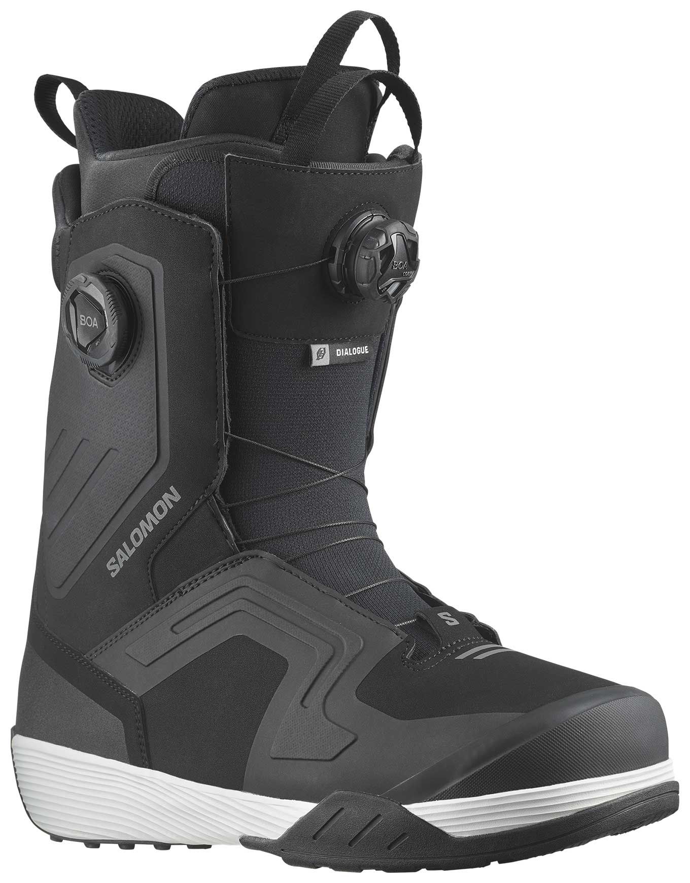 Boots snowboard Salomon Dialogue Dual Boa homme : construction Fit to Ride allégée, laçage BOA® double zone, semelle DAMPLite+ amortissante et Contagrip® pour l’accroche, chausson thermoformable Full Custom Fit et semelle intérieure Ortholite® C2 Quickdry.