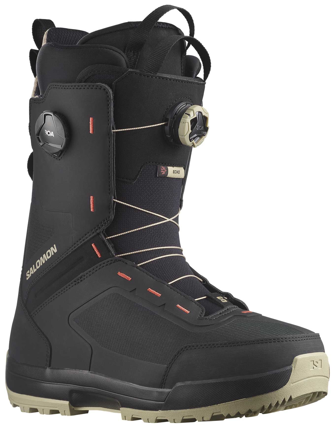 Boot de snowboard Salomon Echo Dual Boa homme, construction Fit to Ride allégée de 10 %, laçage double Boa®, semelle Contagrip® et chausson thermoformable Full Custom Fit pour ride agressif all-mountain.