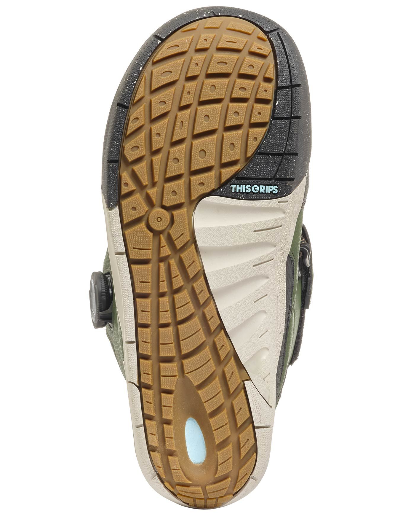 Les chocs sont amortis et les vibrations filtrées par la semelle intercalaire Harshmellow™, ce qui réduit la fatigue et permet des sessions plus longues. La semelle extérieure This Grip™ Premium freestyle se distingue par un talon arrondi qui limite la traînée en randonnée et une voûte plantaire spécifiquement profilée pour un soutien et une stabilité maximale.