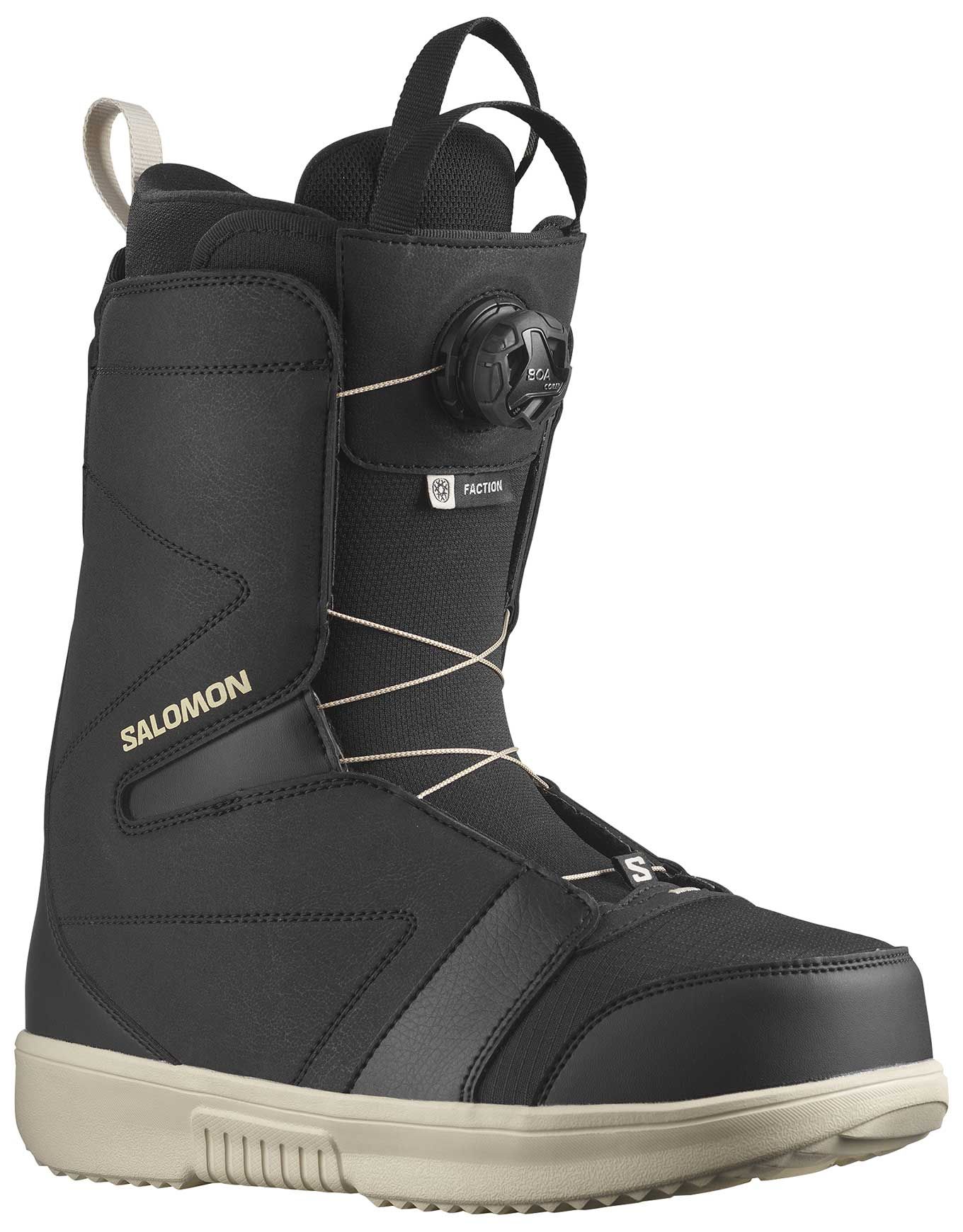 Boot de snowboard Salomon Faction Boa homme : construction Fit to Ride allégée, laçage Boa rapide, semelle D-Light ultralégère et chausson thermoformable Ultralon pour progresser tout en confort en all-mountain.