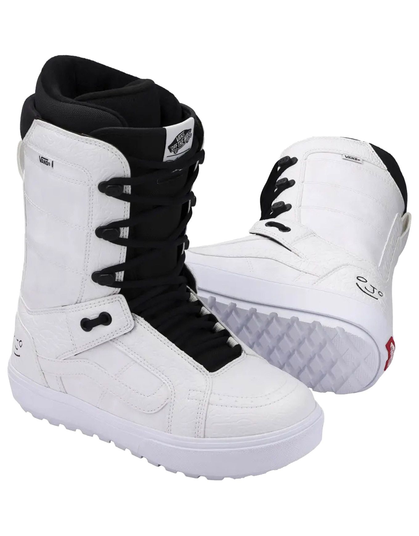 Les boots de snowboard Vans Hi-Standard OG Dillon Ojo/White pour homme débutant ou intermédiaire combinent confort Ultra Cush, amorti PopCush et semelle Waffle inversée pour un maintien fiable et un style authentique sur piste.
