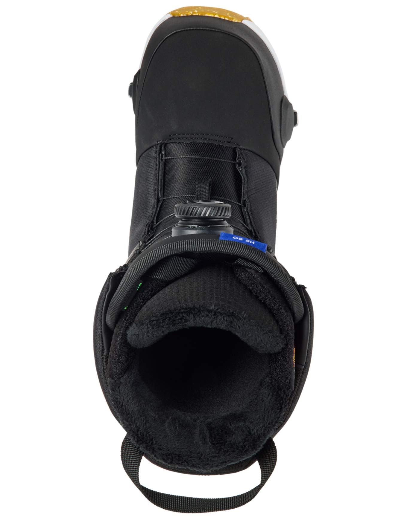 Boots de snowboard Burton Highshot Step On Wide Black homme : système Step On® sans boucles, flex moyen, chausson thermoformable et semelle caoutchouc recyclé pour performance tout-terrain et ajustement large.