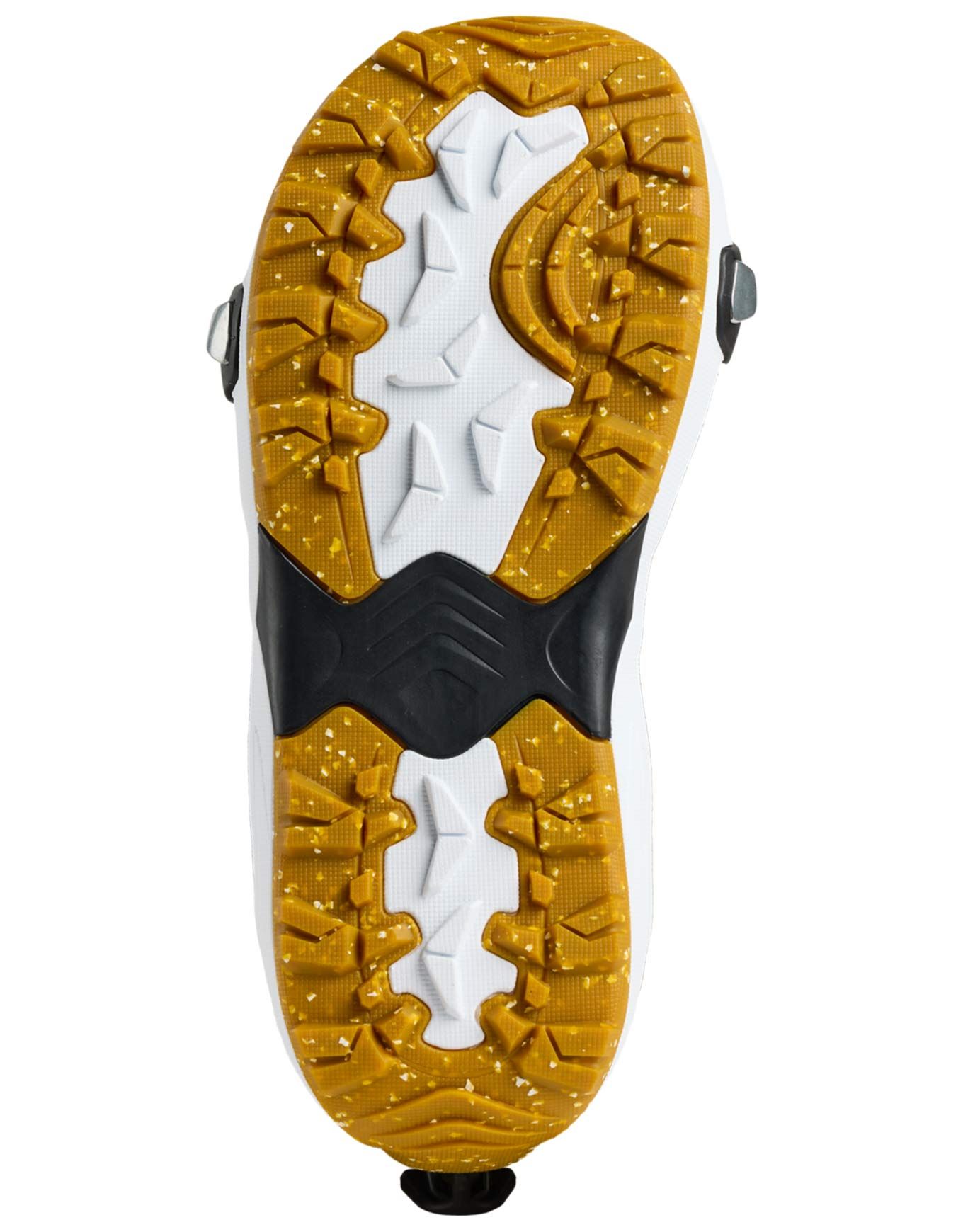 Dès le premier port, le confort se fait ressentir grâce à la présence d’un chausson thermoformable. La semelle extérieure confectionnée en caoutchouc recyclé par Burton procure adhérence et robustesse sur tous terrains, le tout allié à un poids contenu.