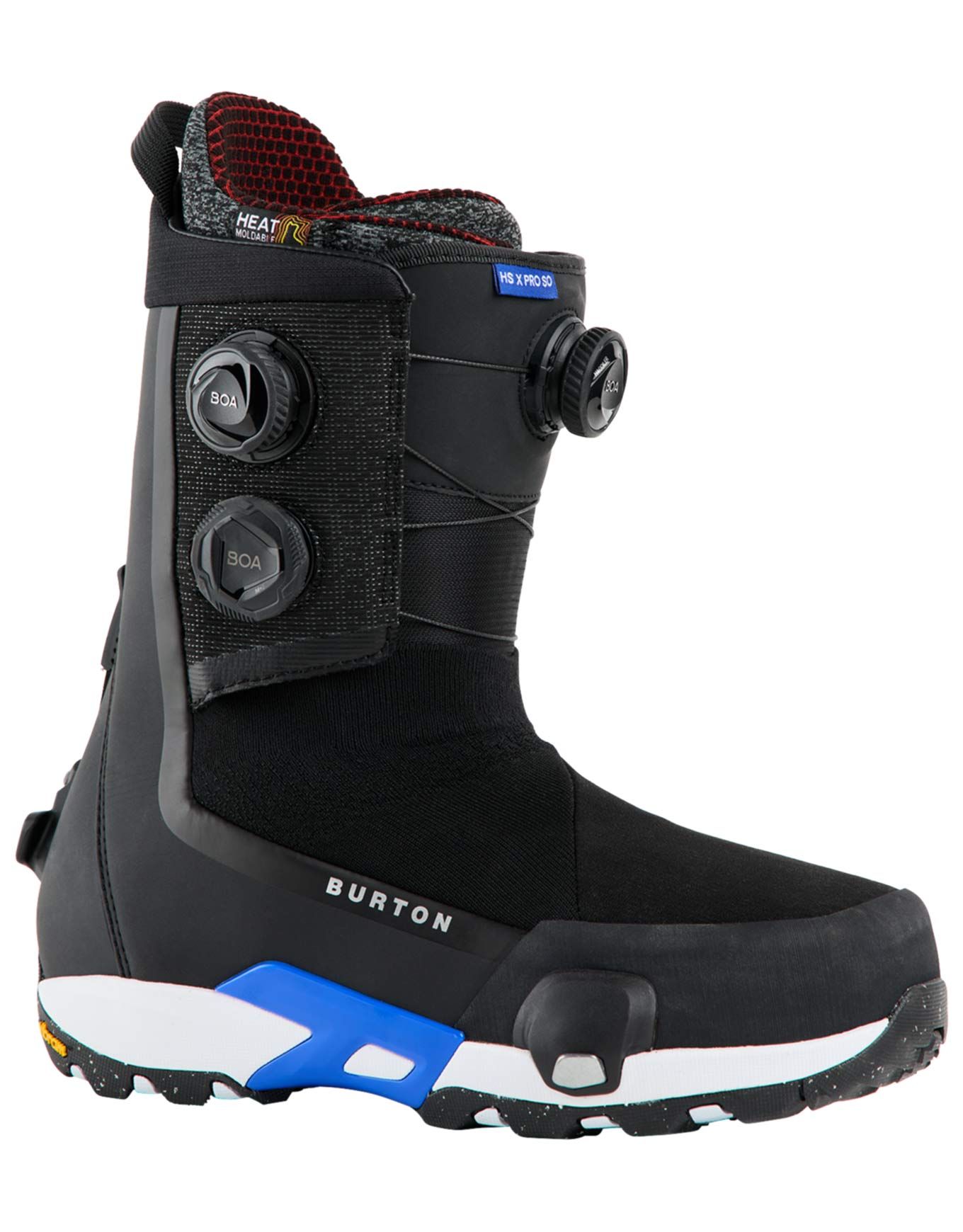 Boots snowboard Burton Highshot X Pro Step On Wide homme : flex rigide, laçage BOA Triple Dial, chausson thermoformable et semelle Vibram EcoStep Plus pour maintien précis et accès rapide sans boucles.