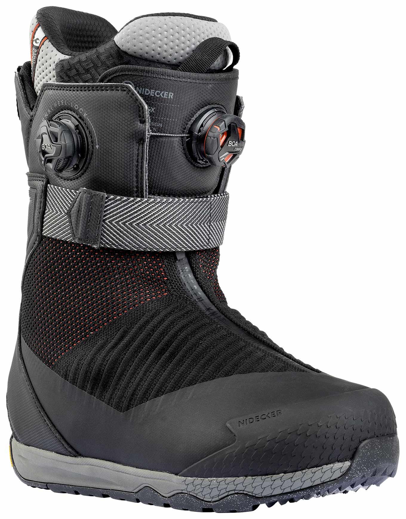 La botte de snowboard Nidecker Index Black est conçue pour les freerideurs confirmés à experts, avec tige asymétrique double Boa® pour un ajustement précis sans pression. Sa semelle Vibram® Approach offre adhérence et amorti sur sol verglacé, tandis que la doublure thermoformable et le bouclier ArmorTech assurent confort et protection.