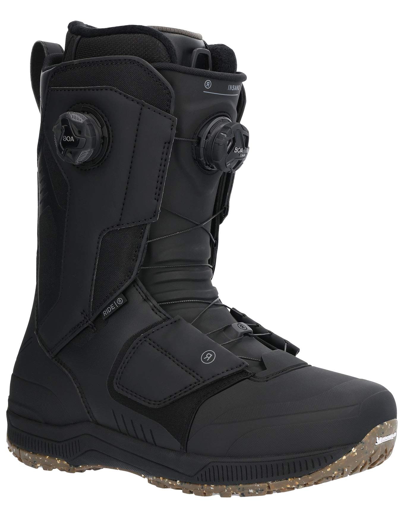 Boots de snowboard Ride Insano Black pour homme, flex très rigide et chausson Intuition™ Dream avec laçage Boa® H4 Focus pour un ajustement millimétrique. Semelle Michelin®, languette renforcée et amorti élevé, conçue pour le freeride expert.