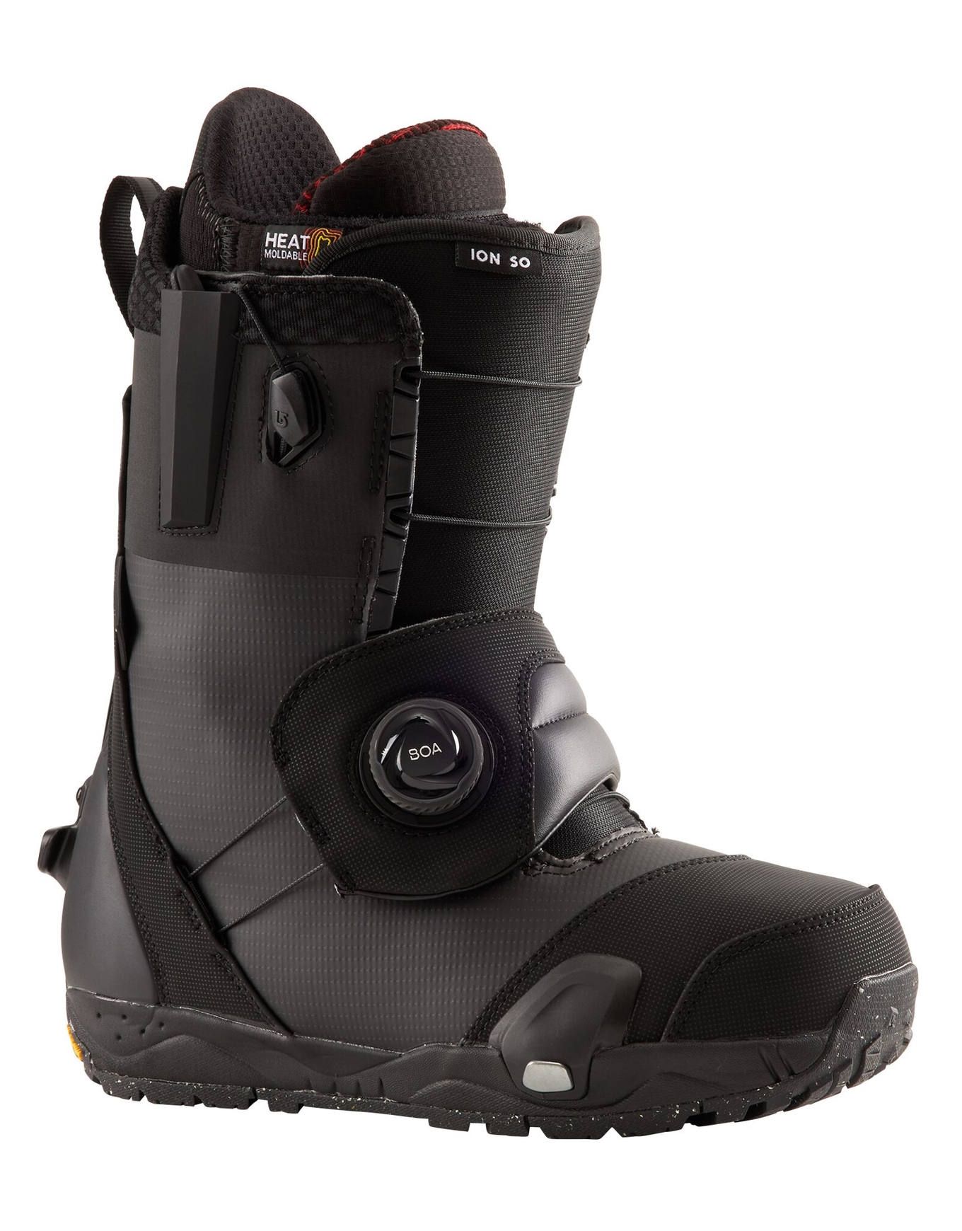 Boots snowboard homme Burton Ion Step On® all-mountain freeride, flex rigide et serrage Boa® pour réactivité immédiate en backcountry. Chausson Life, isolation Sleeping Bag et DRYRIDE Heat Cycle assurent confort et chaleur.