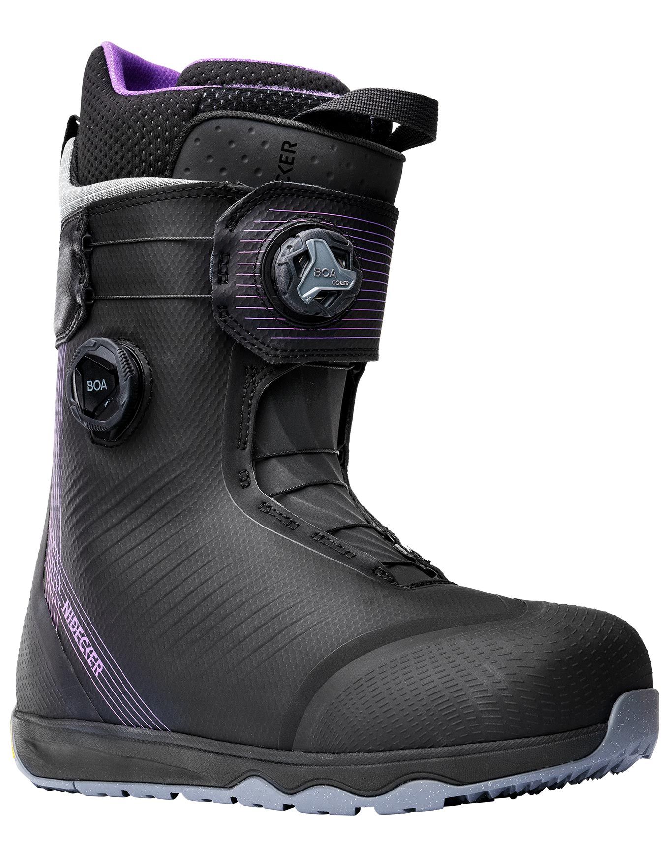 Boot de snowboard Nidecker Kita APX Men Black, flex 9/10 pour freeride expert, laçage Dual Boa® Wrap Strap, semelle Vibram Approach, chausson Gold Wrap thermoformable et protection TPU ArmorTech.