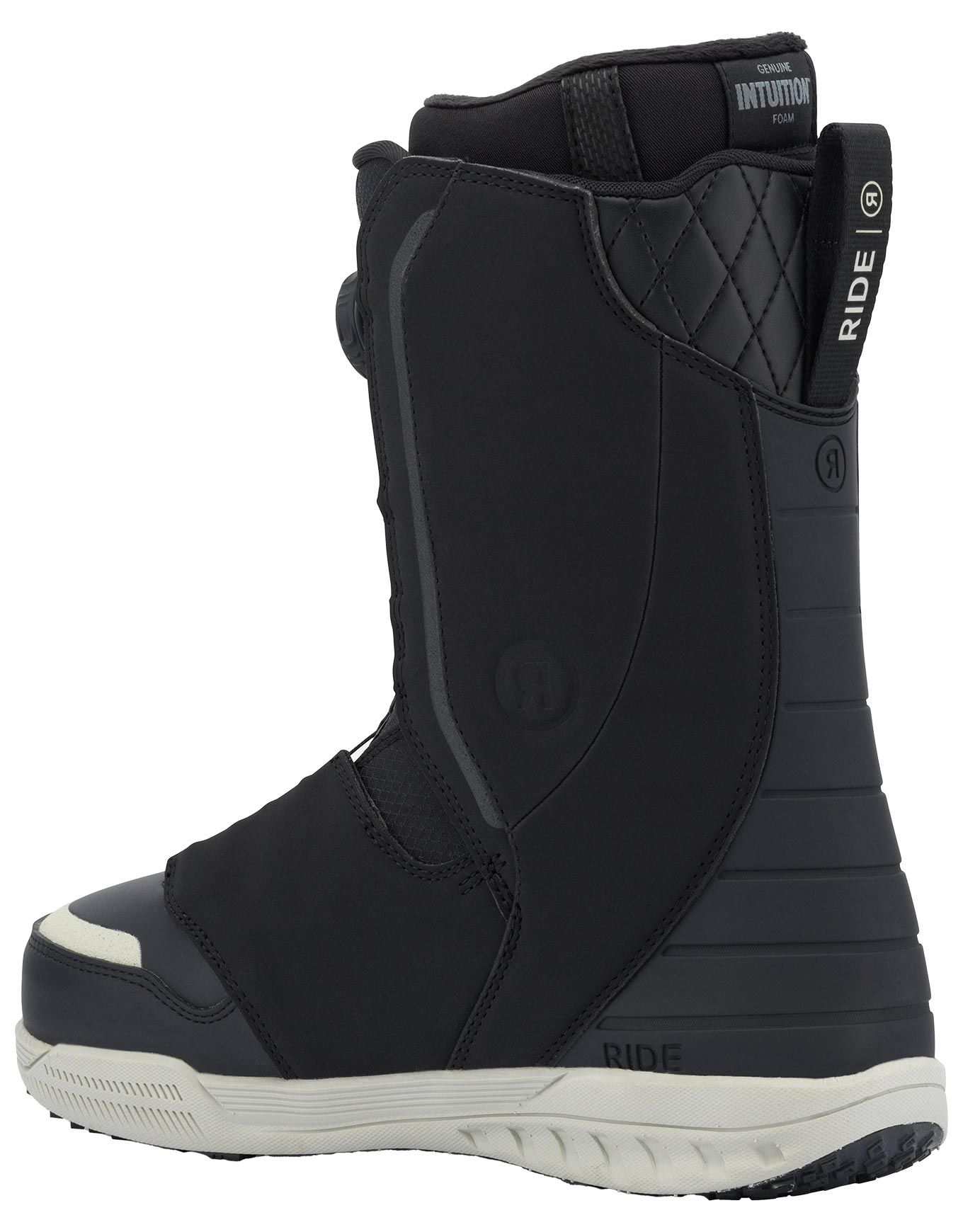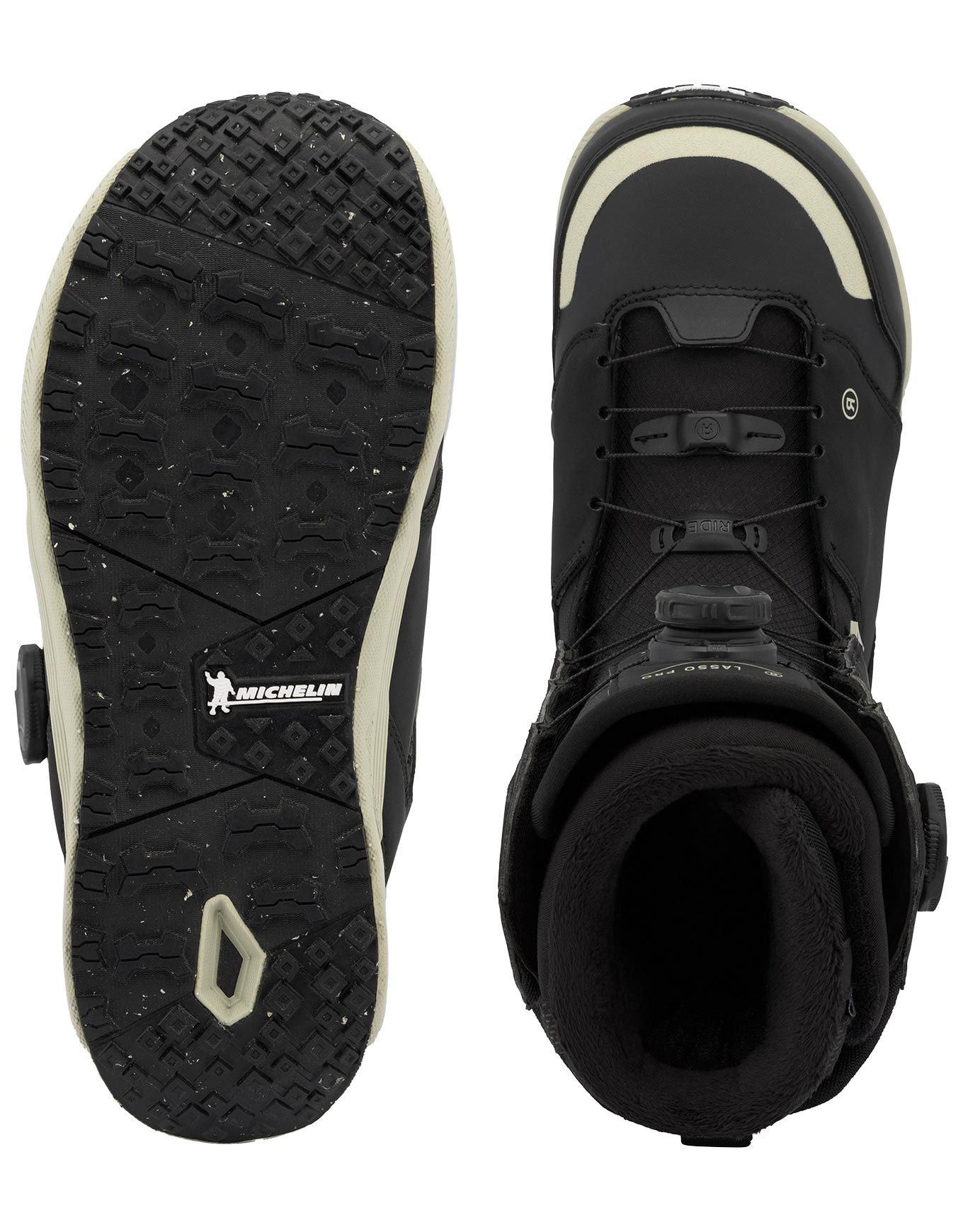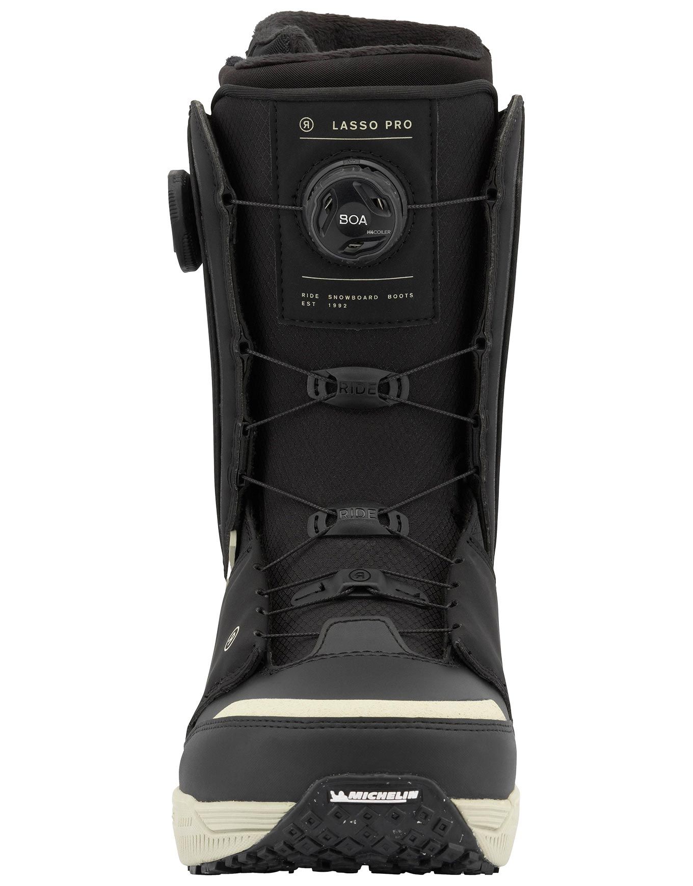 Les boots de snowboard all-mountain Ride Lasso Pro Black pour homme combinent chausson Intuition™, laçage H4 BOA® Coiler et semelle Michelin® pour un maintien précis, un confort optimal et une traction fiable sur tous les terrains.