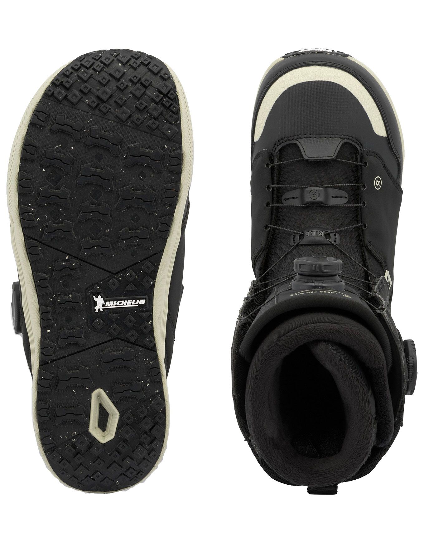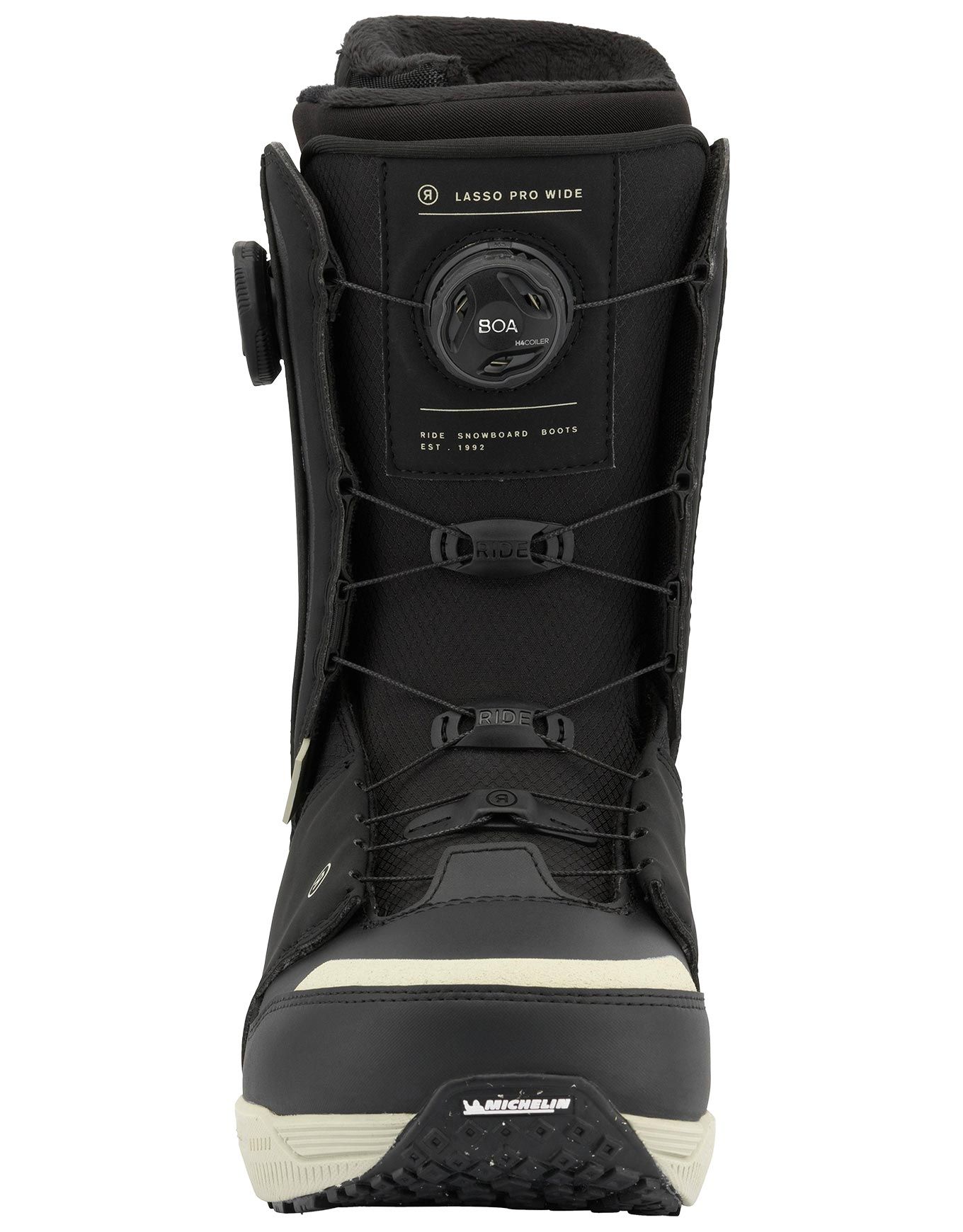 Les boots de snowboard all-mountain Ride Lasso Pro Wide Black, conçues pour rideurs confirmés, associent chausson Intuition™, laçage BOA® Coiler et semelle Michelin® pour un maintien fiable, un confort immédiat et une traction assurée sur tous les terrains.