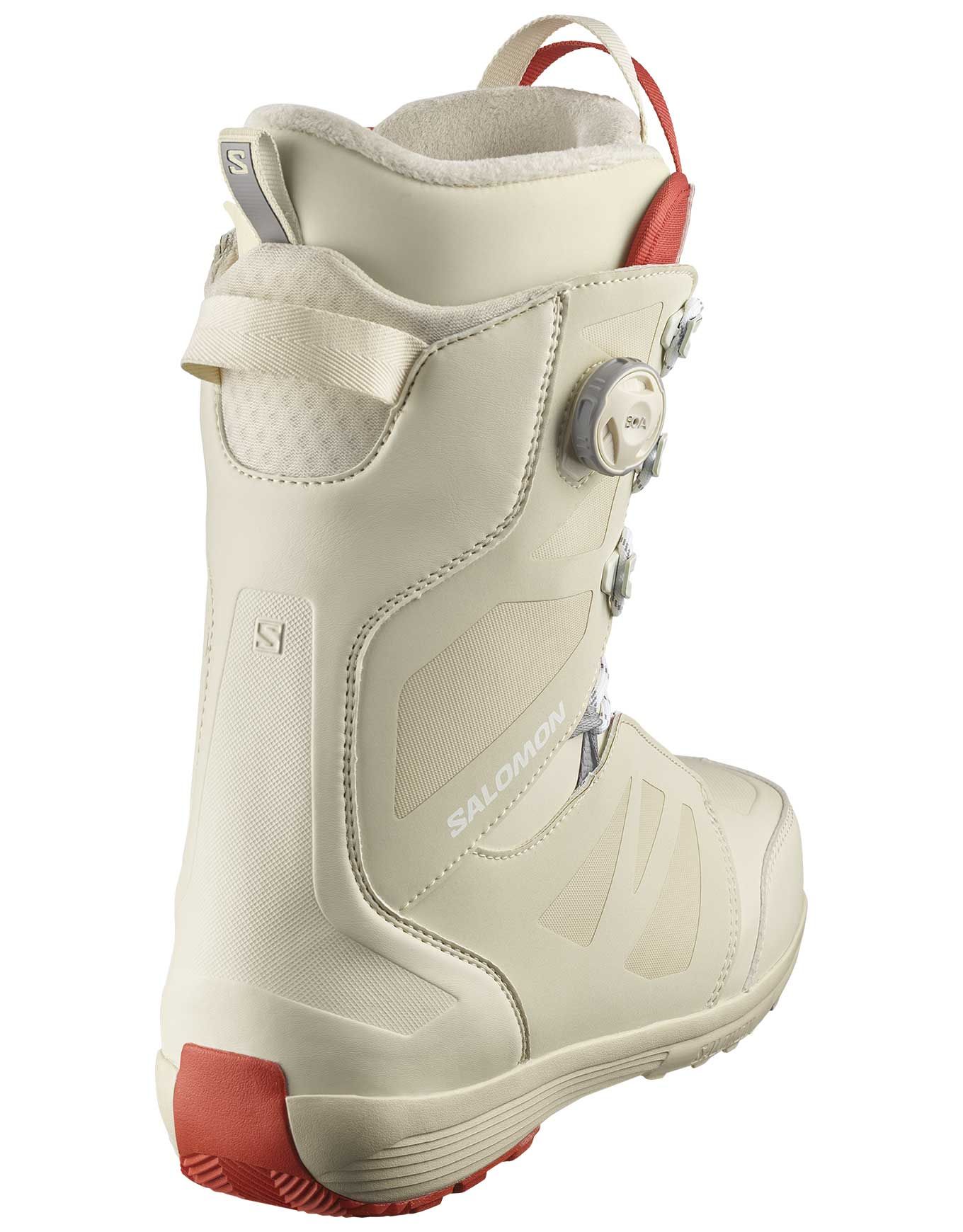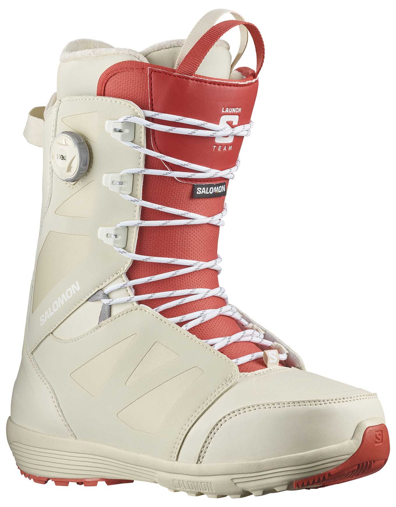 Boot de snowboard all-mountain freestyle homme Salomon Launch Lace Sj Boa, niveau intermédiaire : maintien talon STR8JKT Boa, laçage lacets classiques, chausson thermoformable Ultralon et semelle Ortholite C2 pour confort et durabilité.