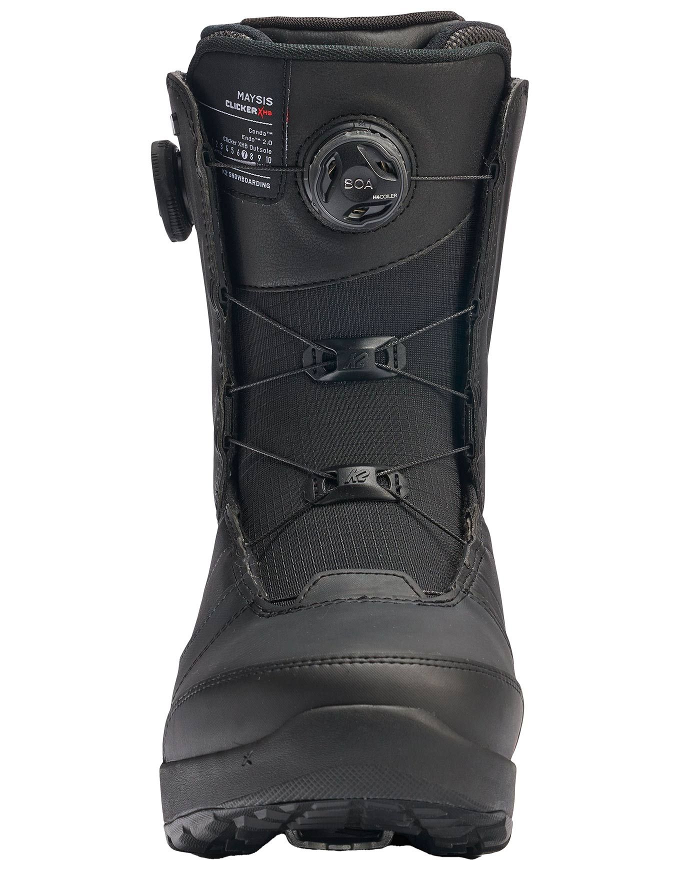 Boots snowboard all-mountain freeride homme K2 Snowboard Maysis Clicker X HB Black, compatible fixations step-in Clicker X HB. Serrage double Boa® précis, flex progressif, chausson Intuition® Control Foam 3D, système Endo™ pour durabilité.