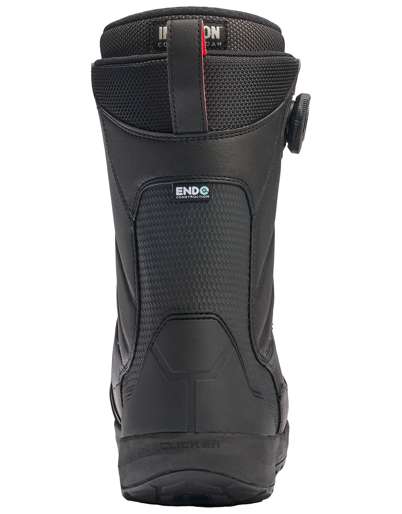 | BOA® CONDA™ | Système de laçage breveté qui utilise un harnais en uréthane pour épouser votre cheville, créant ainsi un maintien inégalé au niveau du talon. BOA® Conda™ permet d'ajuster le serrage du chausson et le maintien du talon à la volée depuis l'extérieur de la chaussure, et ce même avec des gants. |