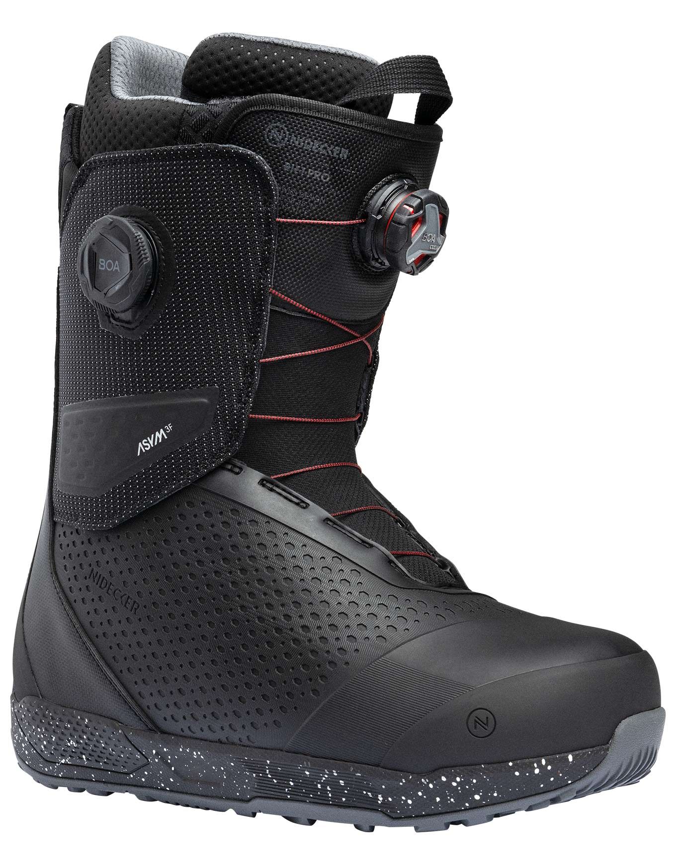 Boot de snowboard Nidecker Rift Pro Black pour homme, flex rigide réglable et laçage Dual Boa® précis pour un soutien constant au park.