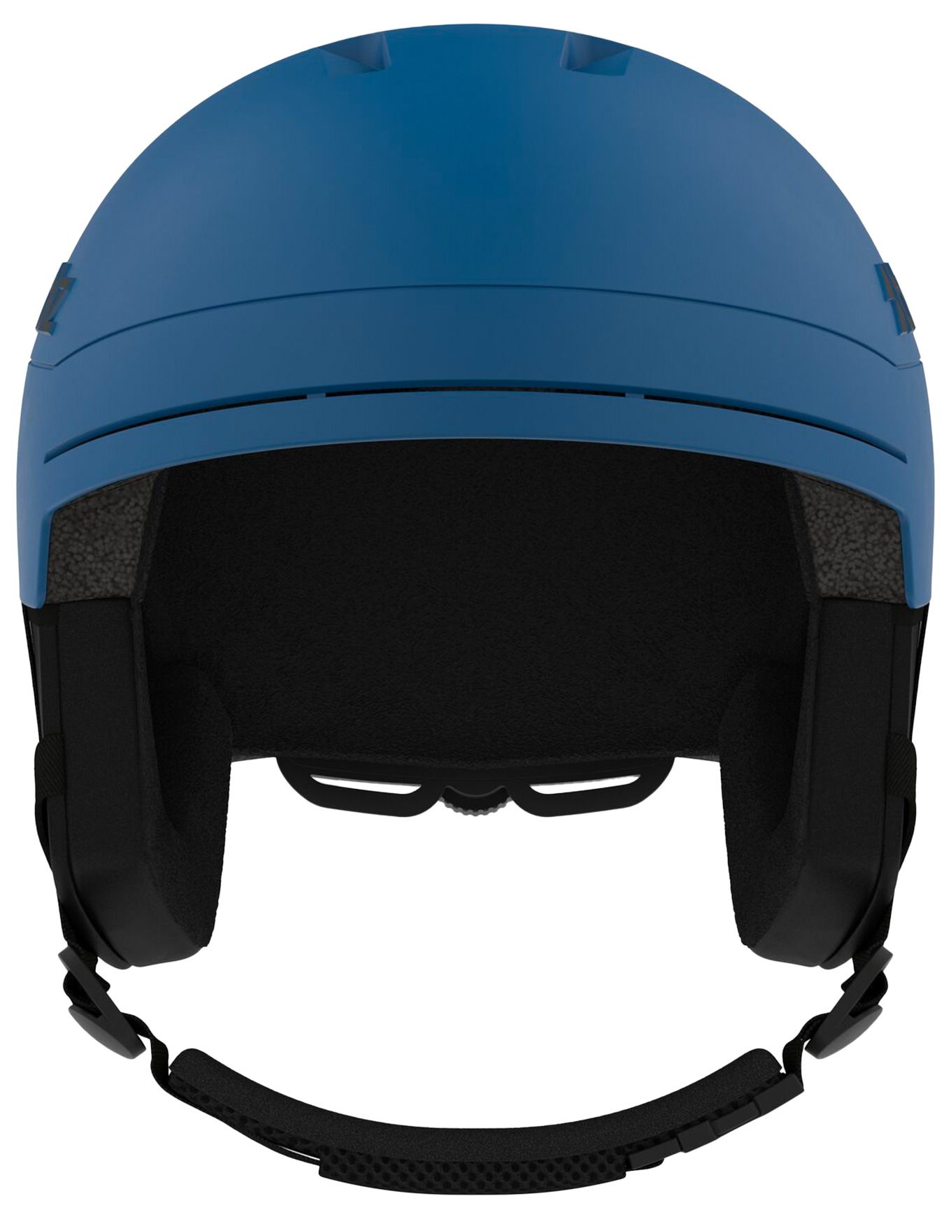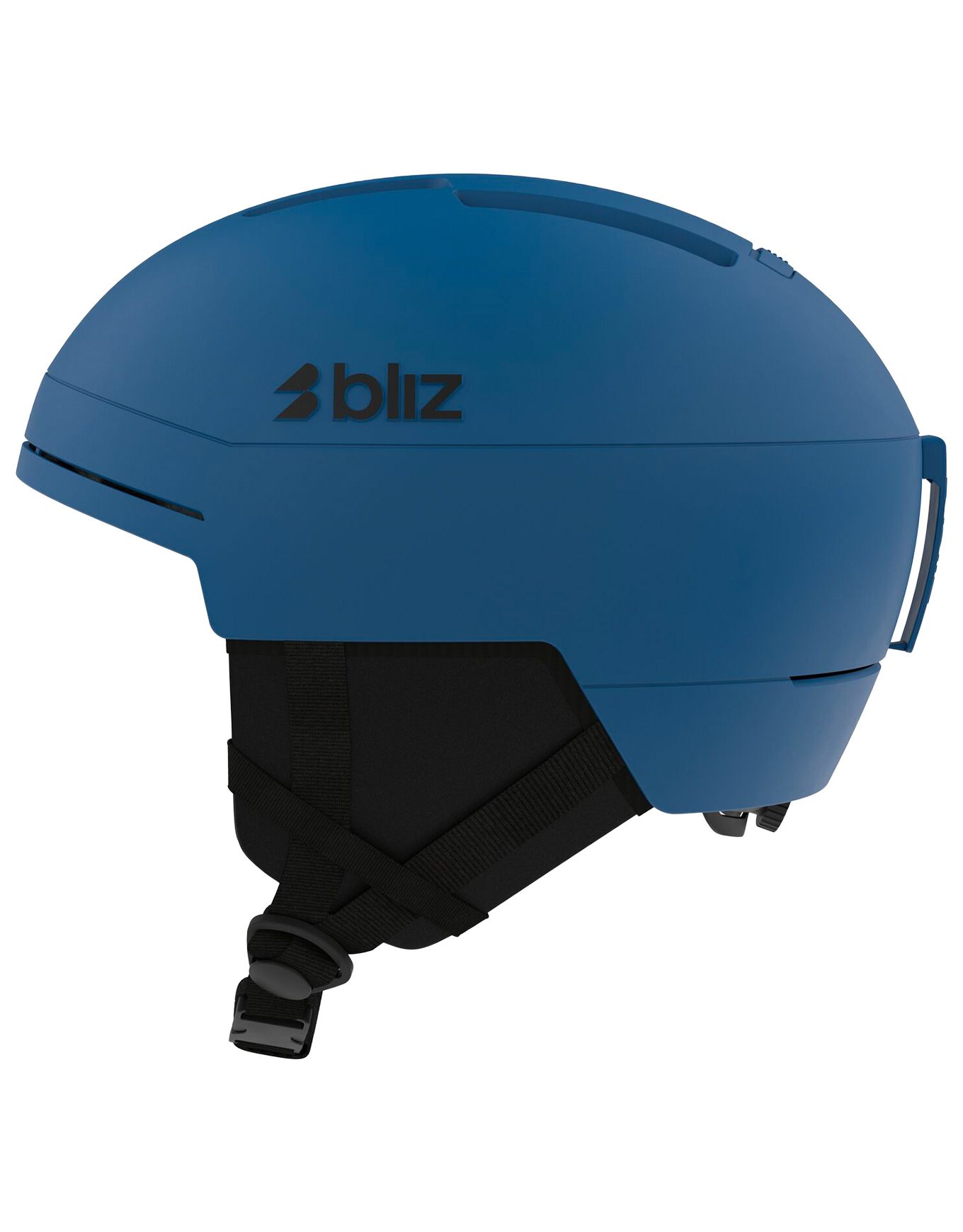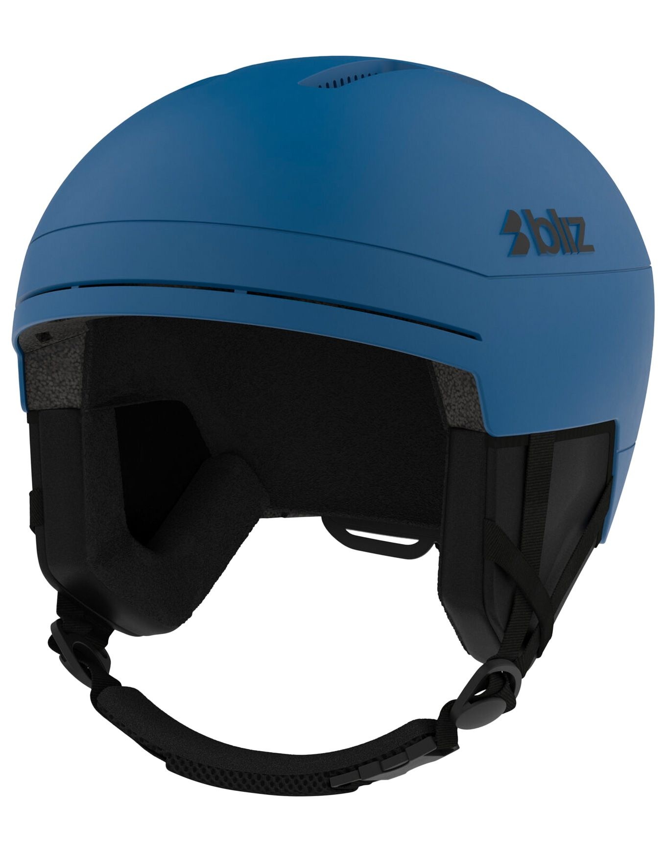 Casque Bliz S002K Matte Blue pour jeunes freerideurs, construction In-Mold EPS/ABS, ventilation Air Flow, ajustement personnalisé, clip masque et sangle réglable.