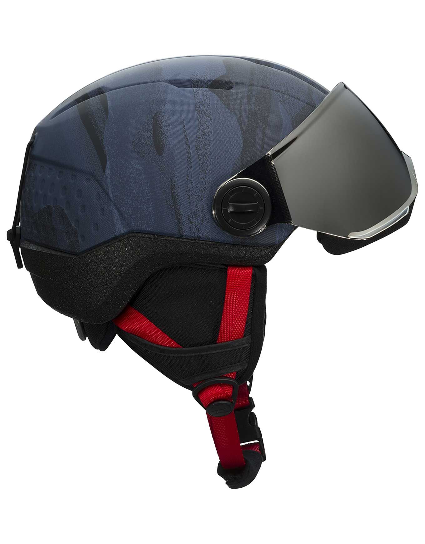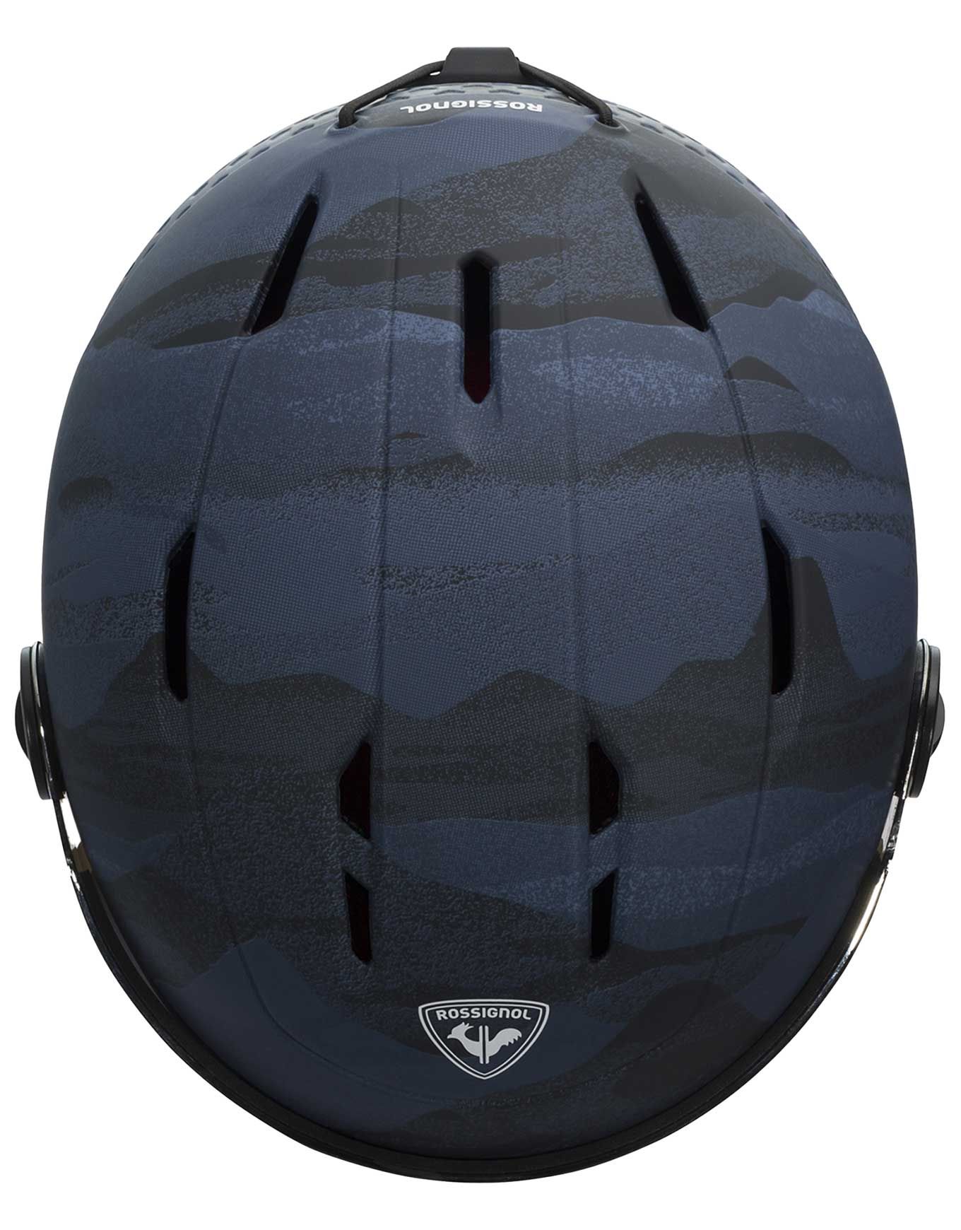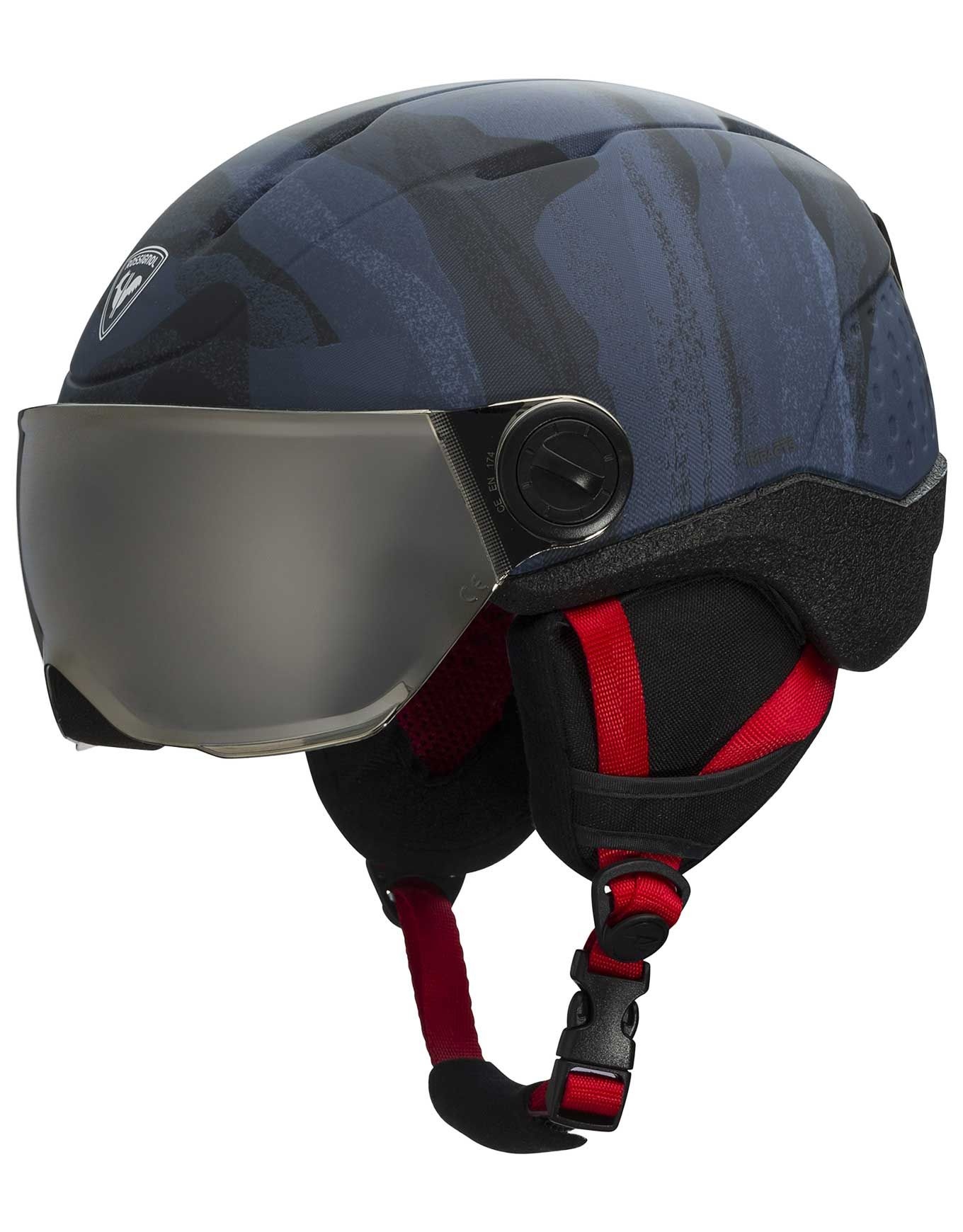 Casque de ski Rossignol Whoopee Visor Impacts Dark Blue enfant, technologie IMPACTS pour une protection durable, visière catégorie 3 intégrée, réglage R-FIT, doublure rembourrée et canaux de ventilation pour confort thermique.