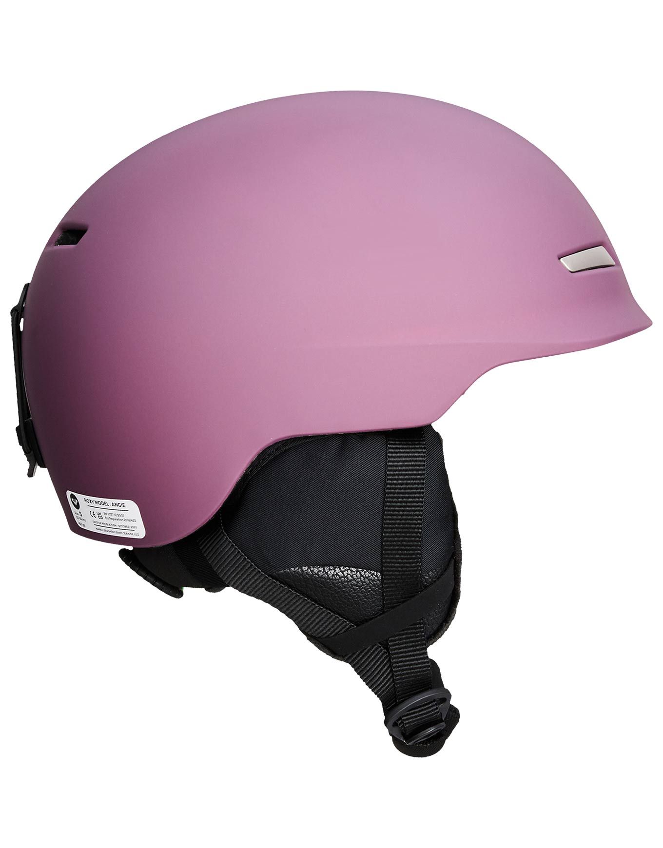 Casque de ski Roxy Angie Helmet Grape Wine, construction In-Mold légère, ajustement précis, doublure chaude, oreillettes amovibles, fermeture Fidlock® et compatibilité masques Feelin.
