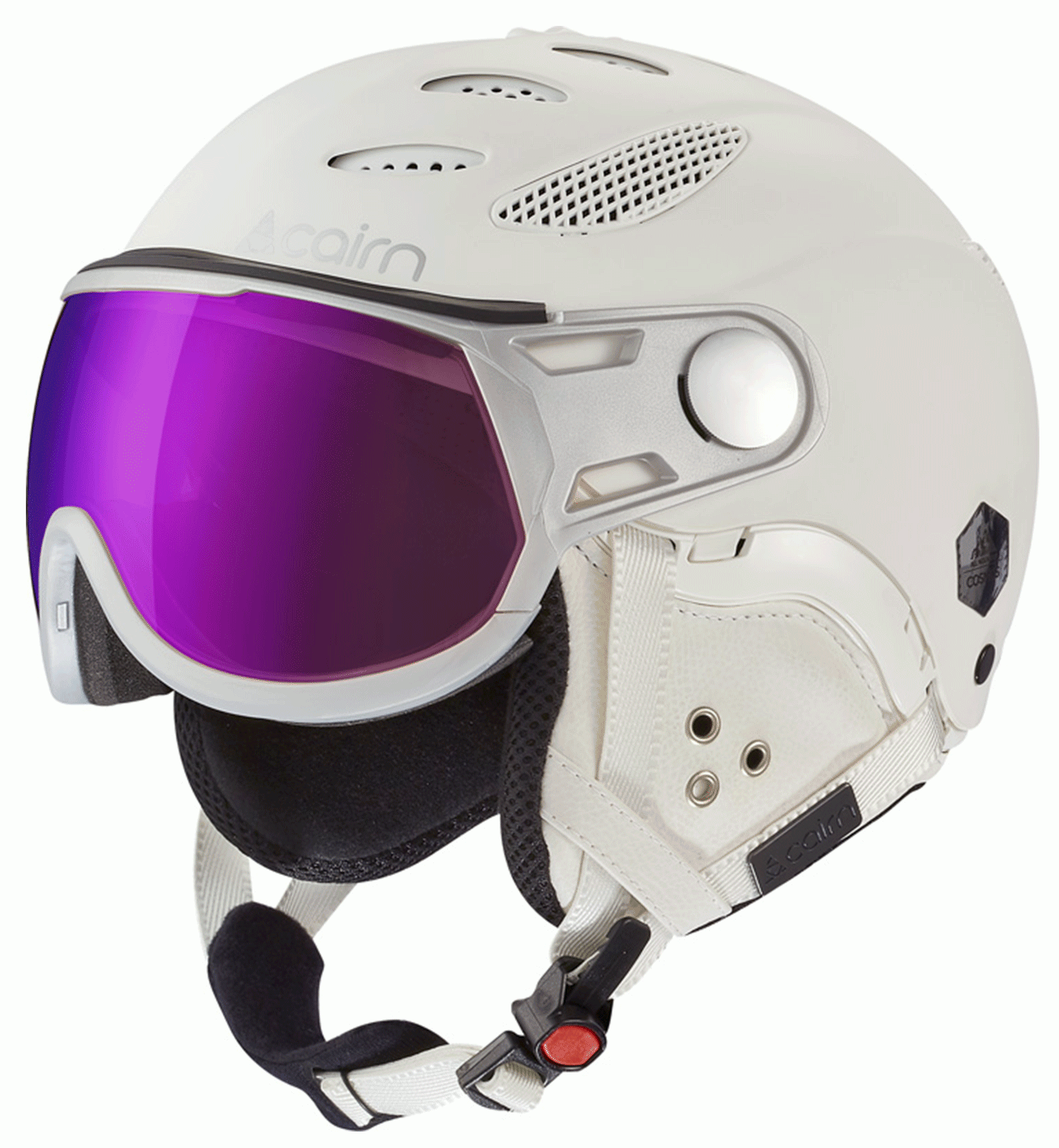 Casque de ski Cairn Cosmos Evo équipé d’une visière photochromique cat. 1-3, coque ABS monocoque, ajustement Wheel Fit, intérieur hypoallergénique et ventilations réglables.