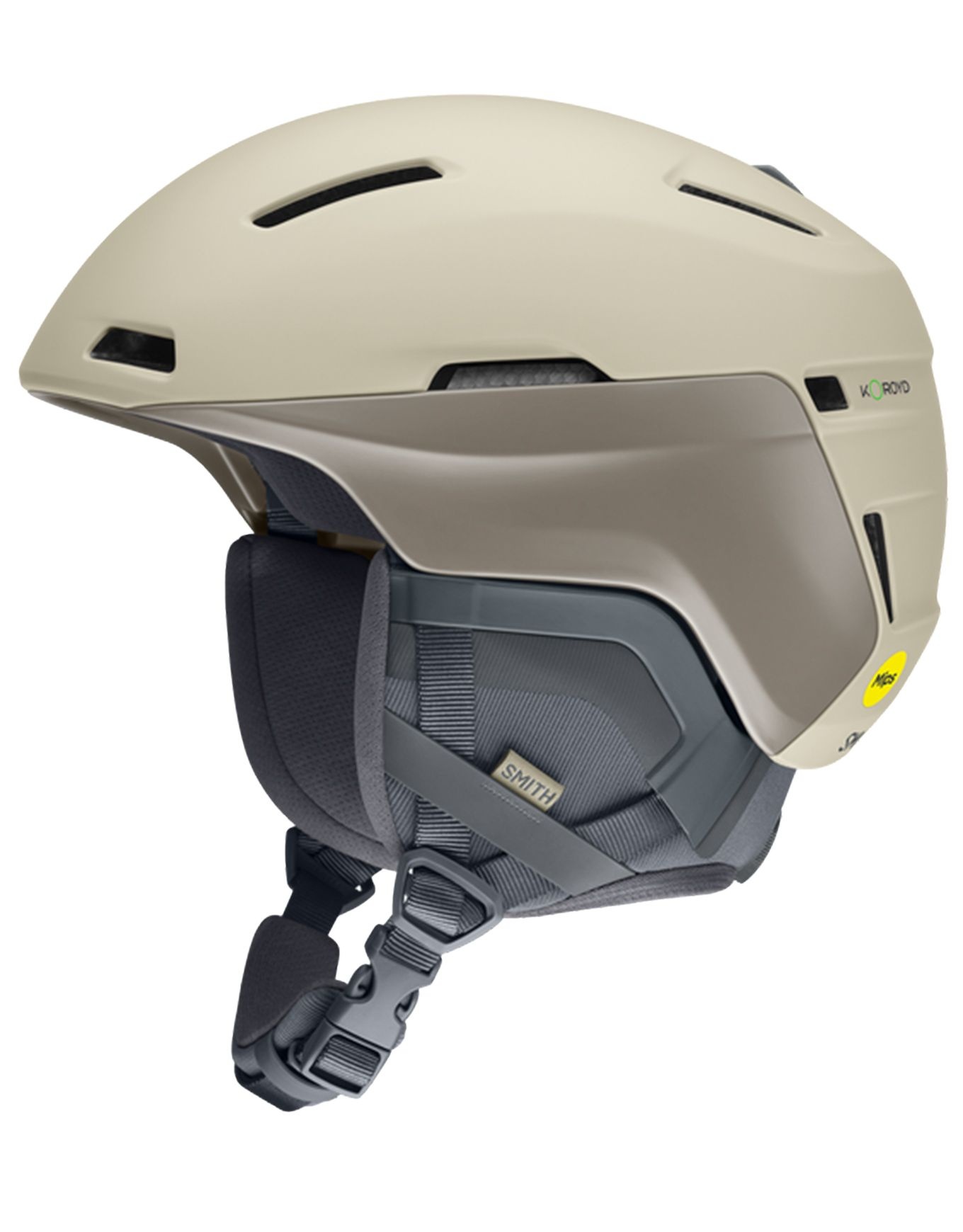 Casque de ski/snowboard Smith Accel MIPS Matte Chalk, construction In-Mold légère, ajustement 360°, ventilation réglable, doublure Ionic+™ antimicrobienne, protection MIPS et Koroyd™, compatible audio Aleck™.