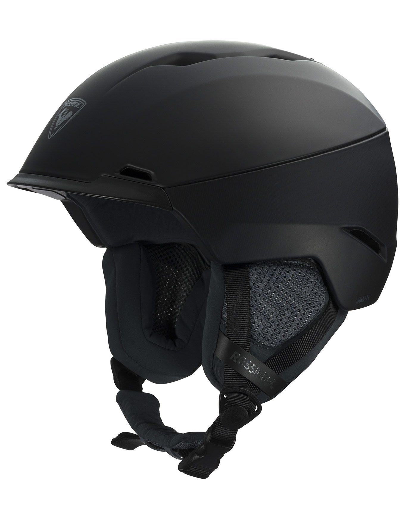 Casque de ski Rossignol Alta Impacts Black, construction In-Mold légère avec mousse multi-impact et système de réglage R-FIT pour un ajustement précis et une ventilation personnalisable.