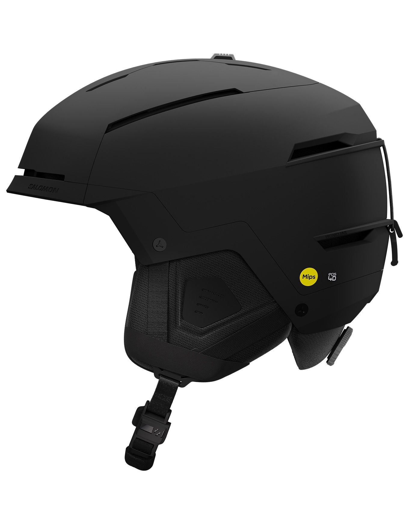 Salomon Arcane Prime Mips Black : casque de ski alliant coque ABS, mousse EPS 4D et système MIPS pour une protection optimale contre les chocs. Molette Boa, boucle Fidlock, construction MaxFit, aération Airflow et doublure Polartec assurent ajustement précis, confort, chaleur et respirabilité.