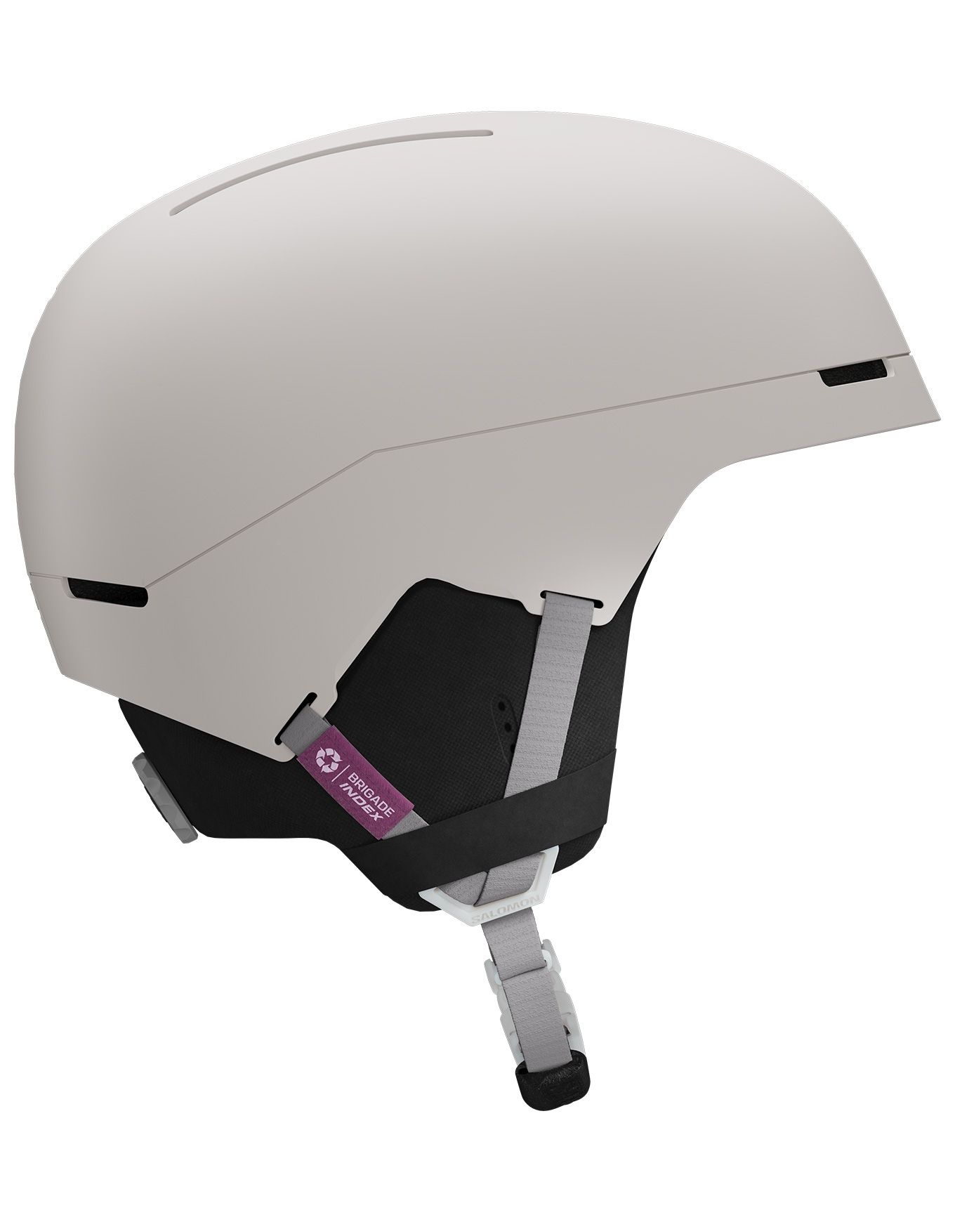 Casque de ski/snowboard Salomon Brigade Index Grey/Violet, look freestyle unisexe, réglage 360 V personnalisé, mousse EPS 4D contre les chocs, construction MaxFit pour confort et acoustique.